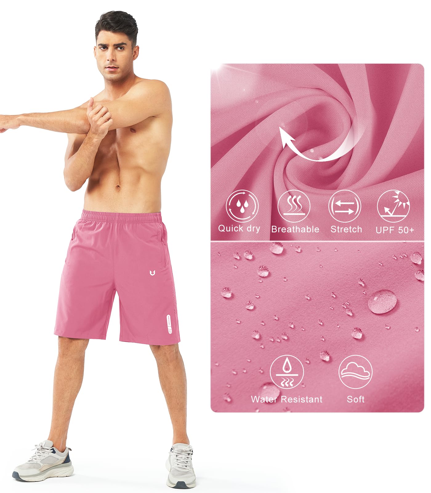 Lightweight & Breathability: Men's athletic hiking Shorts are made quality 4-Way Stretch/breathable and quick-drying fabric helps to wick away moisture and dry quickly keep you cool A synthetic of polyester and spandex can be very durable, abrasion-resistant, and stretchy enough to allow for better mobility