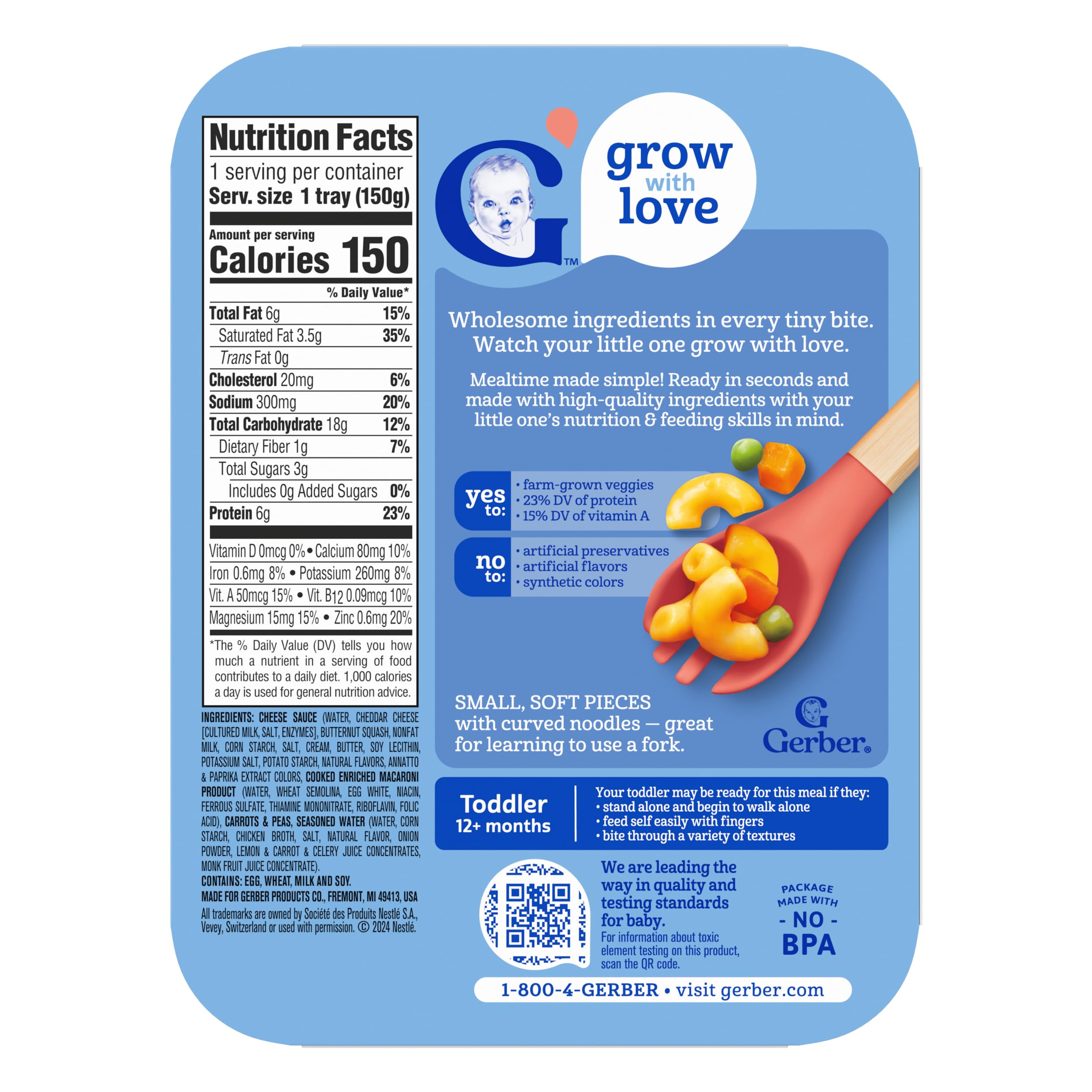 Gerber Macaroni and Cheese is perfect for baby led feeding. With wholesome ingredients designed for tiny hands, this toddler pasta makes mealtime for toddler easier. To prepare, puncture seal on both compartments and microwave for 30 seconds. Then remove seal and test temperature before serving. Gerber’s dedication to quality has been and always will be our highest priority. We're committed to being your partner in parenthood with quality ingredients & expert guidance.