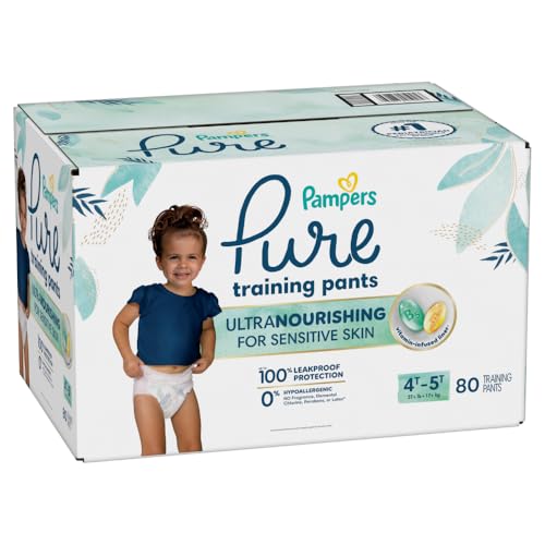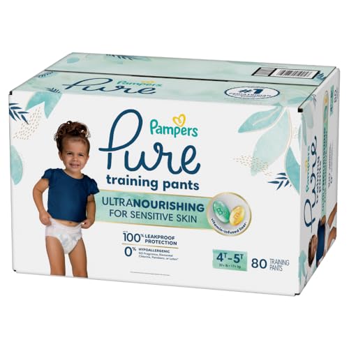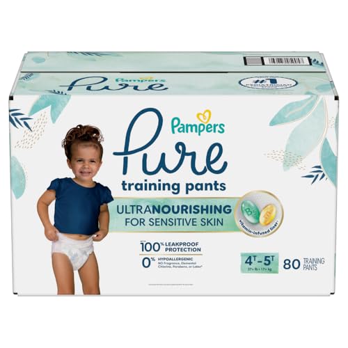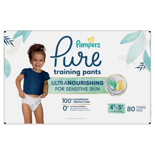 Is your toddler showing signs of potty-training readiness? Reach for Pampers Pure Training Pants—the gentle, absorbent alternative to traditional training underwear. Designed to help support your toddler’s ever-growing independence, these soft training pants have a comfy underwear-like fit that is easy to pull up and down. For quick changes, Pure Training Pants have easy-tear sides. Made with a skin-friendly, vitamin-infused liner, Pampers Pure helps protect your toddler’s delicate skin during this big-kid transition. These hypoallergenic training pants are dermatologist-approved, and free of fragrance, elemental chlorine, parabens, and latex*. So, no matter how bumpy the journey, their skin will stay soft. From the #1 pediatrician-recommended brand**, Pampers Pure Training Pants are a trusted choice for parents starting potty training, offering the gentle care toddlers need and the leak protection parents trust. Whether you're switching from diapers or looking for the best pull on training underwear, Pampers Pure makes it all that much easier—especially on sensitive skin Pampers Pure Training Pants are available in the following sizes: training underwear 2T–3T (16–34 lbs.), training underwear 3T–4T (30–40 lbs.), and training underwear 4T–5T (37+ lbs.). *Natural rubber **based on a 2023 survey of US & Canadian pediatricians