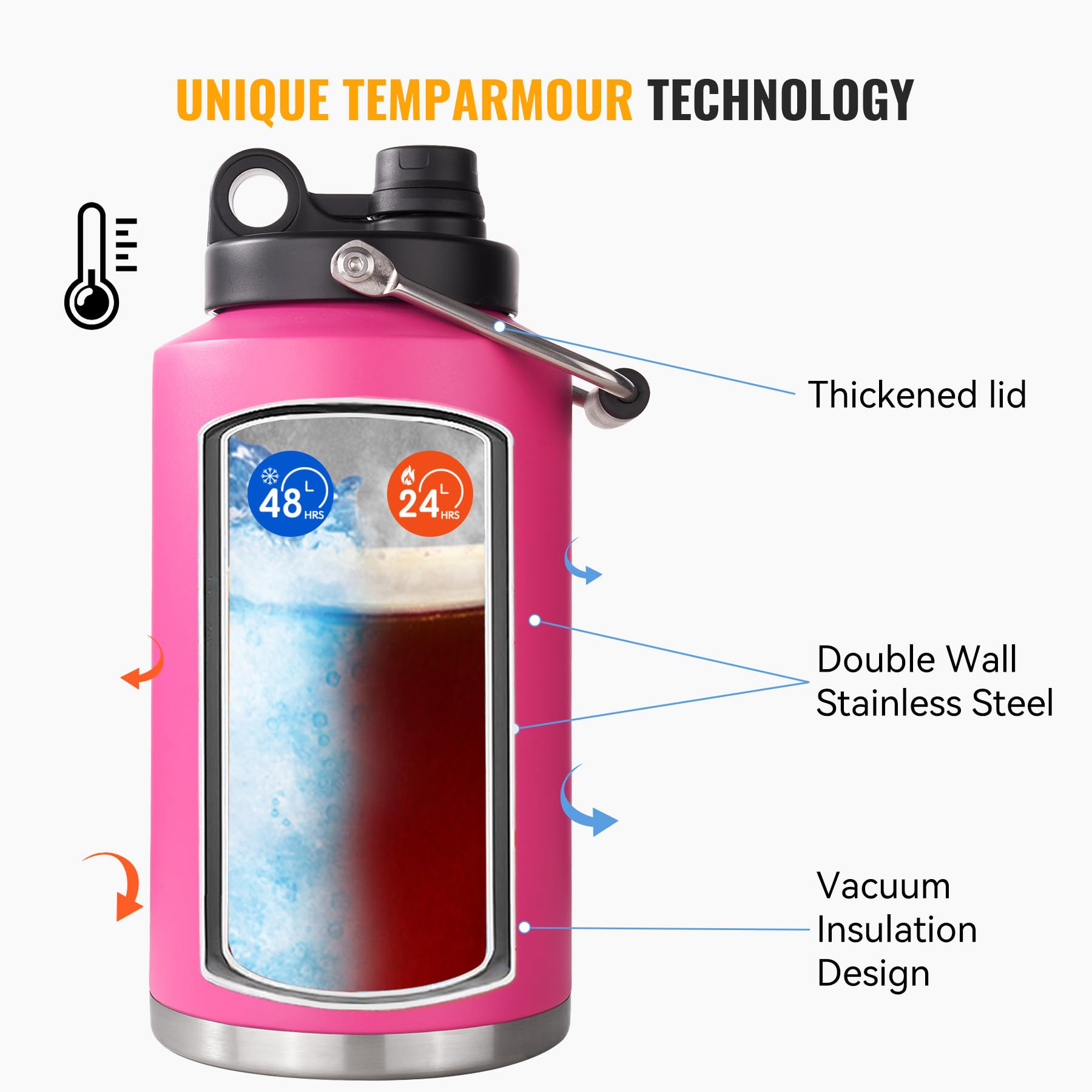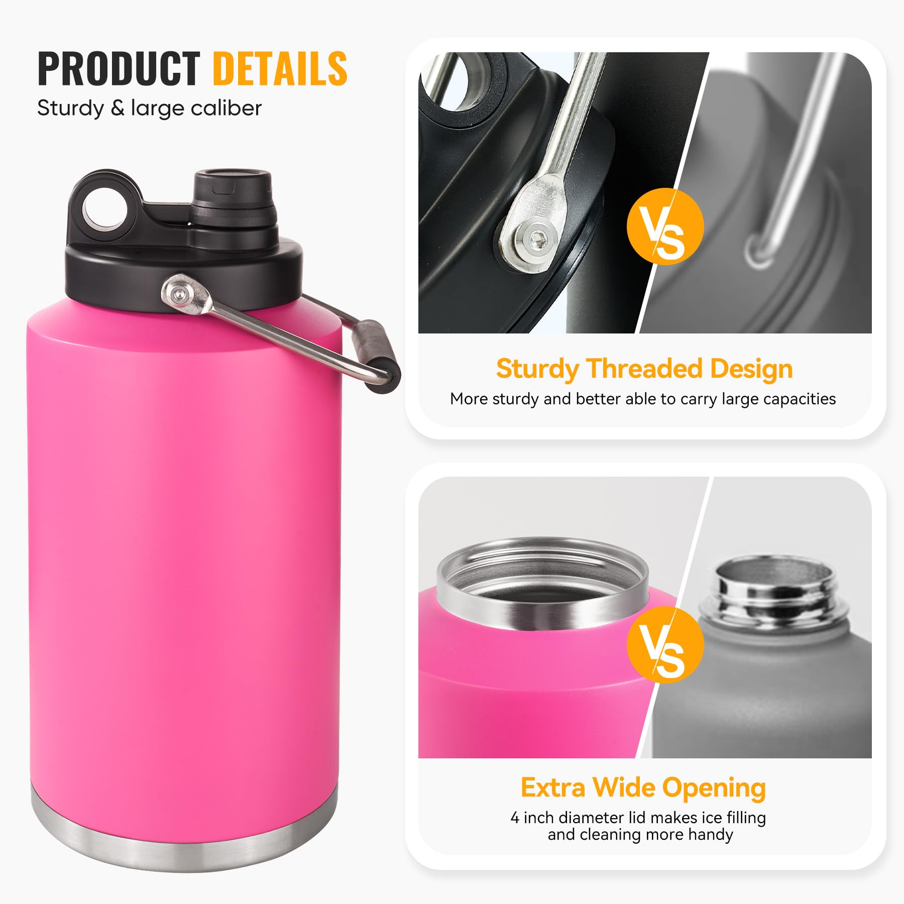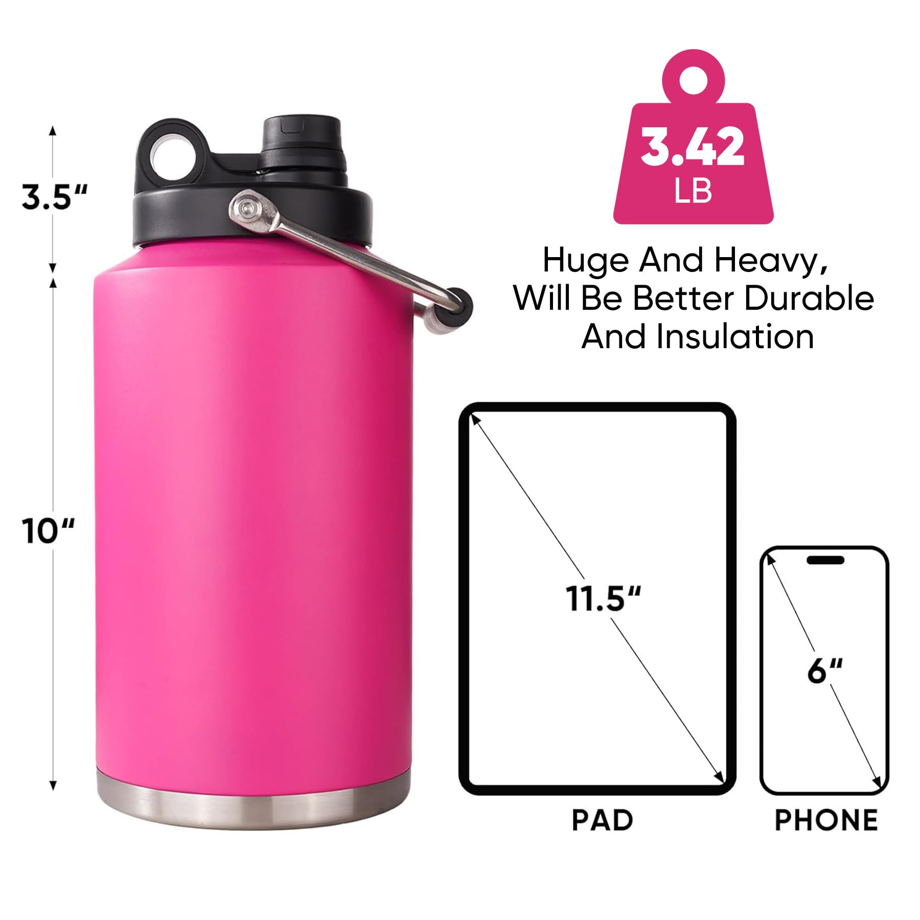 💧VACUUM INSULATED: Double layer vacuum insulated kettle, keeps the liquids icy for up to 48 hours or piping hot for up to 24 hours.This gallon water bottle is made of Powder-coat sweat-free technology, bottle grabbing becomes easy in time after strenuous exercise.