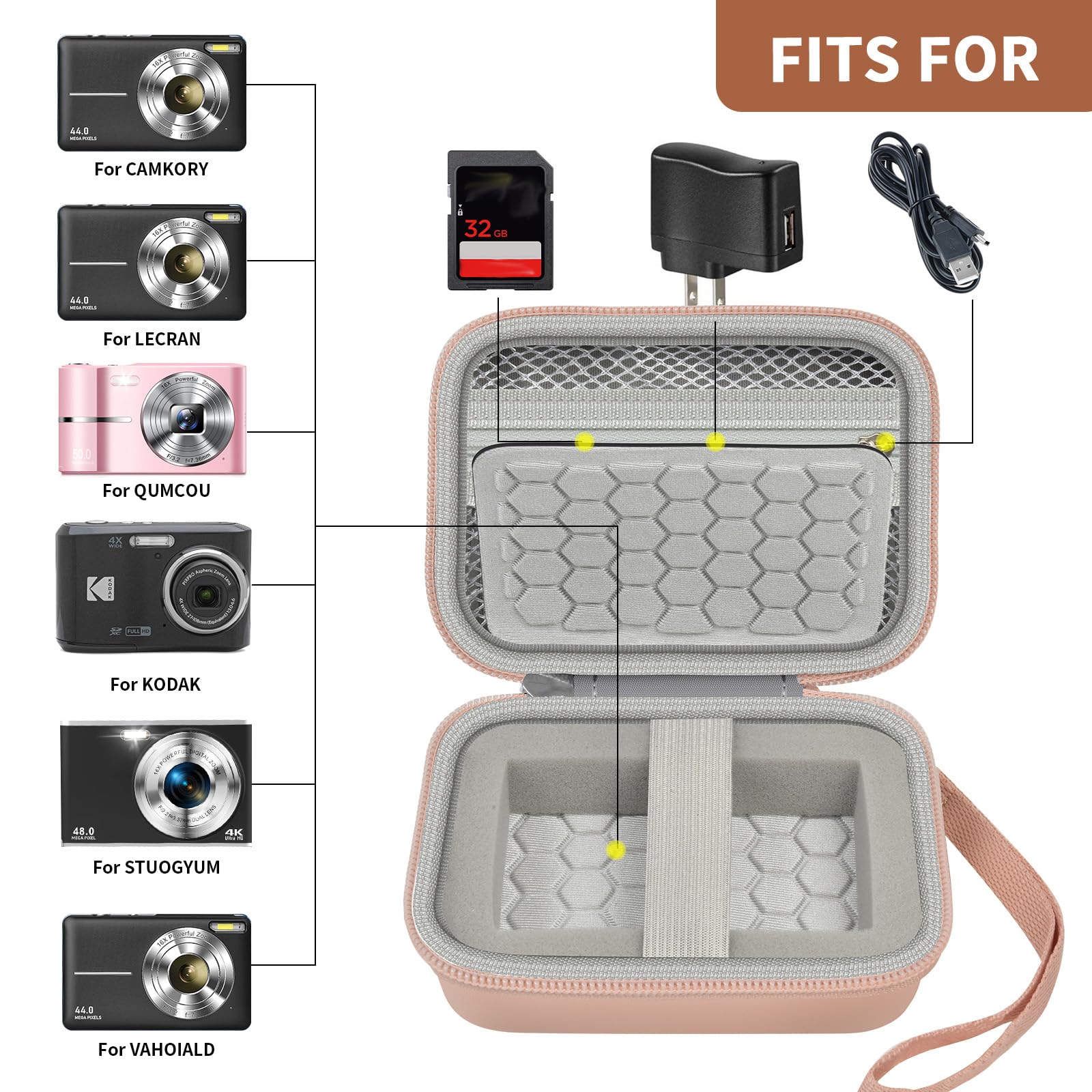 ◆Simple and Comprehensive Storage: It can accommodate the universal student digital camera with the limiting size of 4.9 in*3.5 in* 2.2 in, charger and USB cable, to meet your various kinds of needs.(case only)
