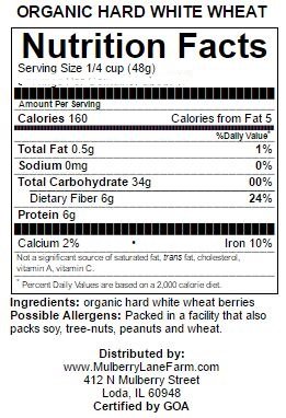 Hard white spring wheat berries. Non-irradiated! USDA Certified Organic; Non-GMO
