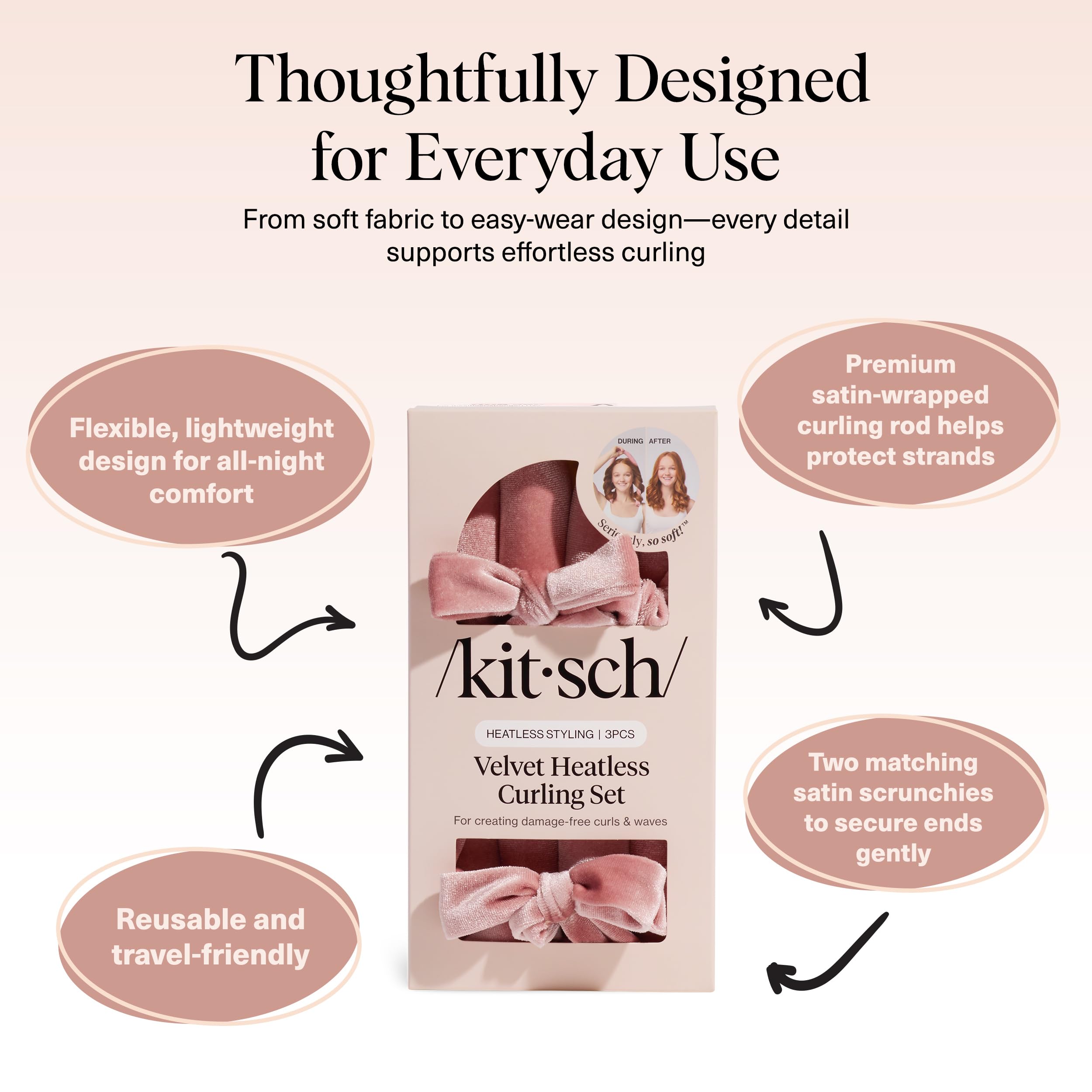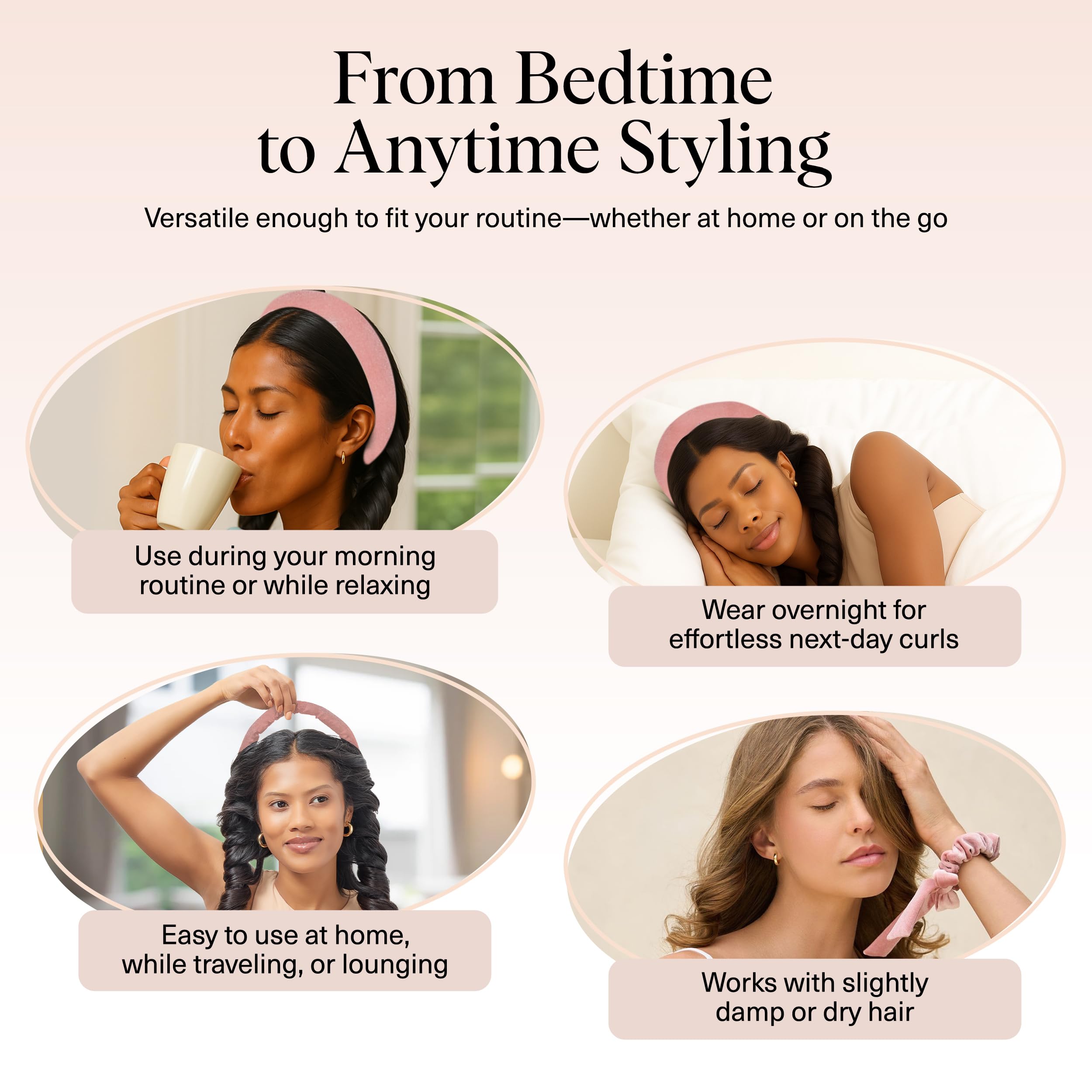HAIR CURLERS TO SLEEP IN – No more uncomfortable rollers! This lightweight overnight hair curler includes one velvet curling rod and two velvet bow scrunchies that securely hold hair in place while you sleep. Wake up to effortless overnight curls without dents or crimping.