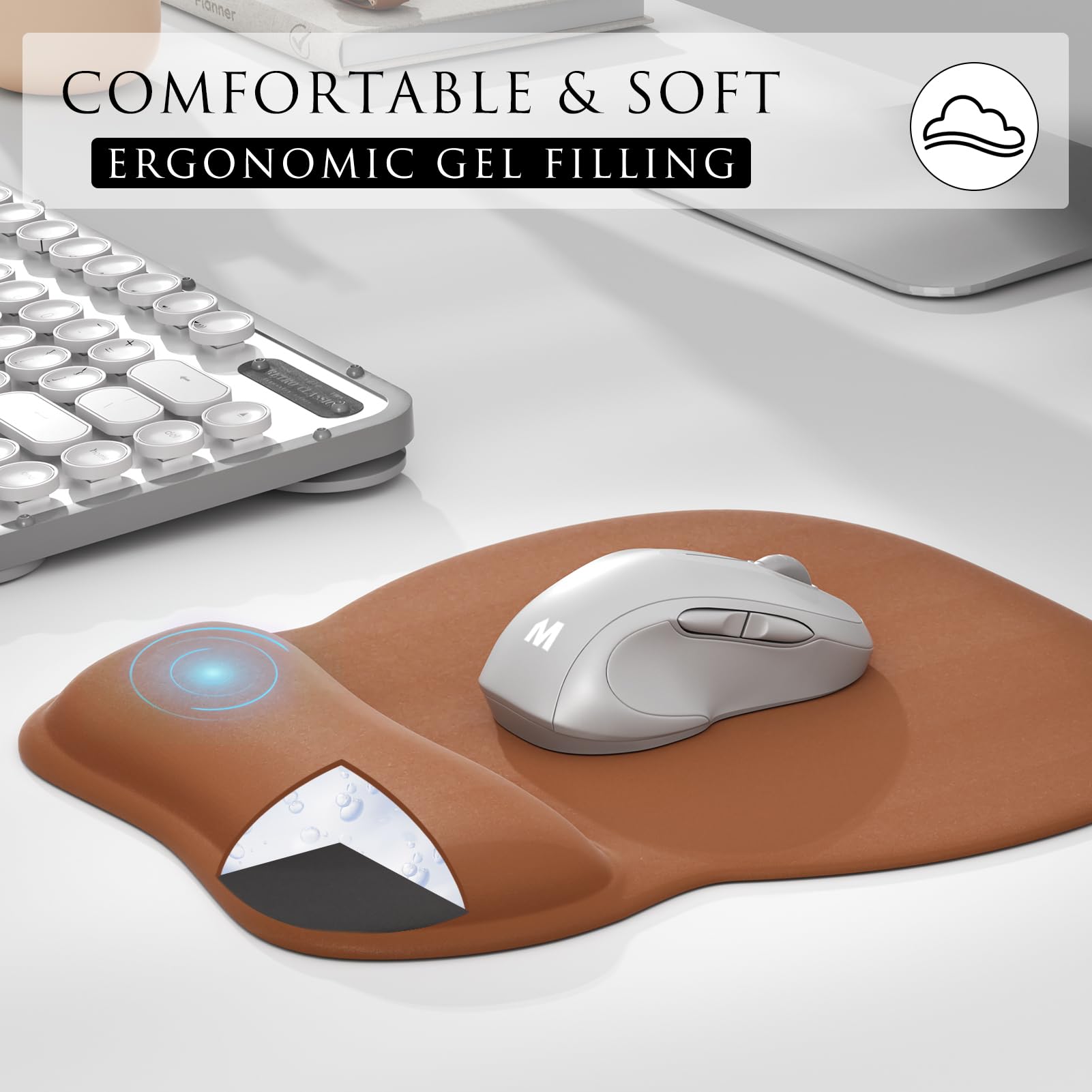 Comfortable Gel Filling: The ergonomic wrist rest is filled with soft gel that provides a comfortable touch and effective support to your wrist, reducing stress that can lead to repetitive motion disorders. The gel pad is encased in high-quality Lycra cloth, preventing it from being sticky like other gel mouse pads.