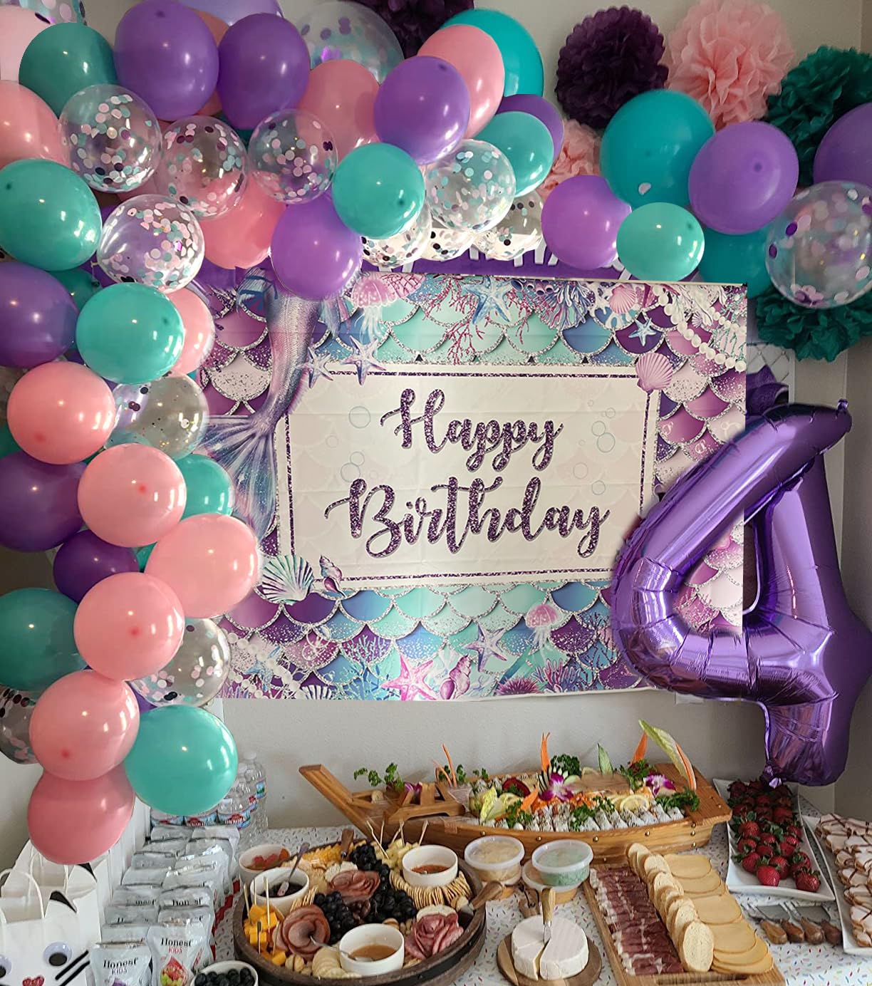 【What You Get】:This pink and purple balloons set include : 10 pcs light pink balloons, 5 pcs pearl pink balloons,10 pcs pastel purple balloons, 10 purple balloons, 10pcs teal blue balloons ,5 pcs purple teal blue confetti balloons, 2pcs light pink and deep purple balloon ribbon. birthday baby shower party decorations.all in one value package! light pink and purple blue balloons are a great way to add a pop of color to any party without spending a lot of money.