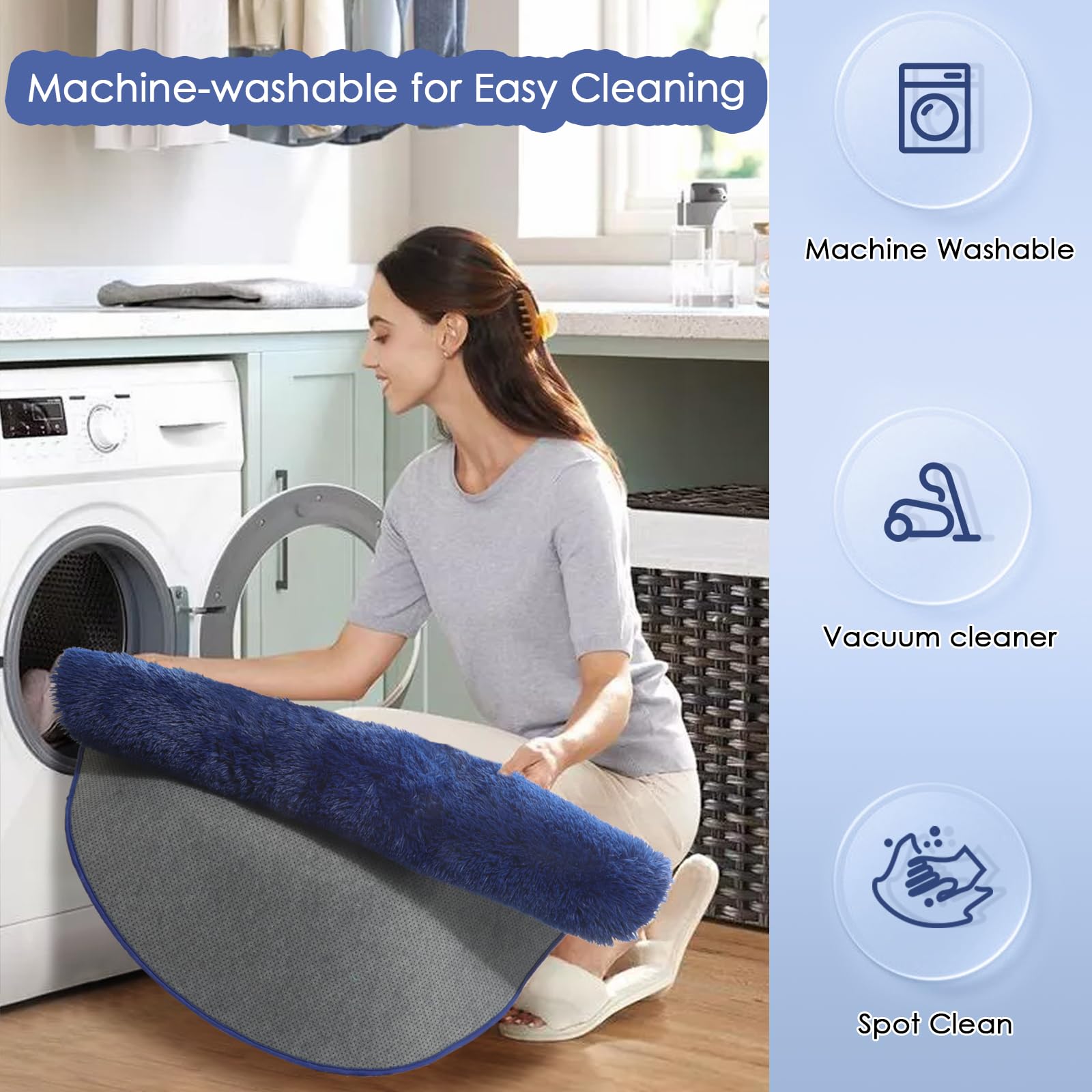 How to Clean: We suggest you vacuum or wipe it, or hand wash and air dry to make this area rug fluffy and have a long service life. If you are tired of tedious cleaning, this furry rug is machine-washable for easy cleaning to save you time and energy