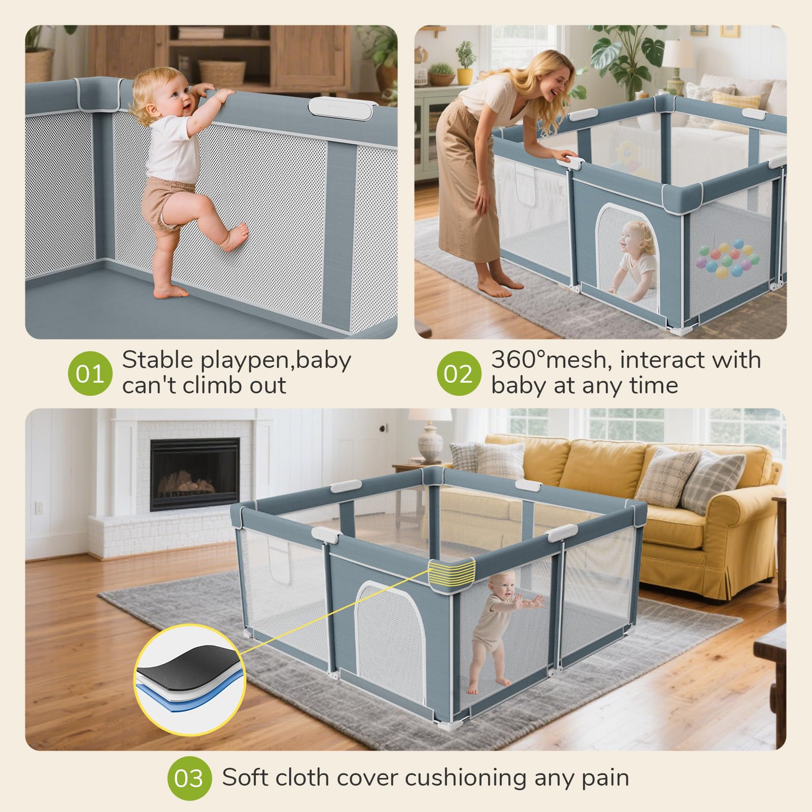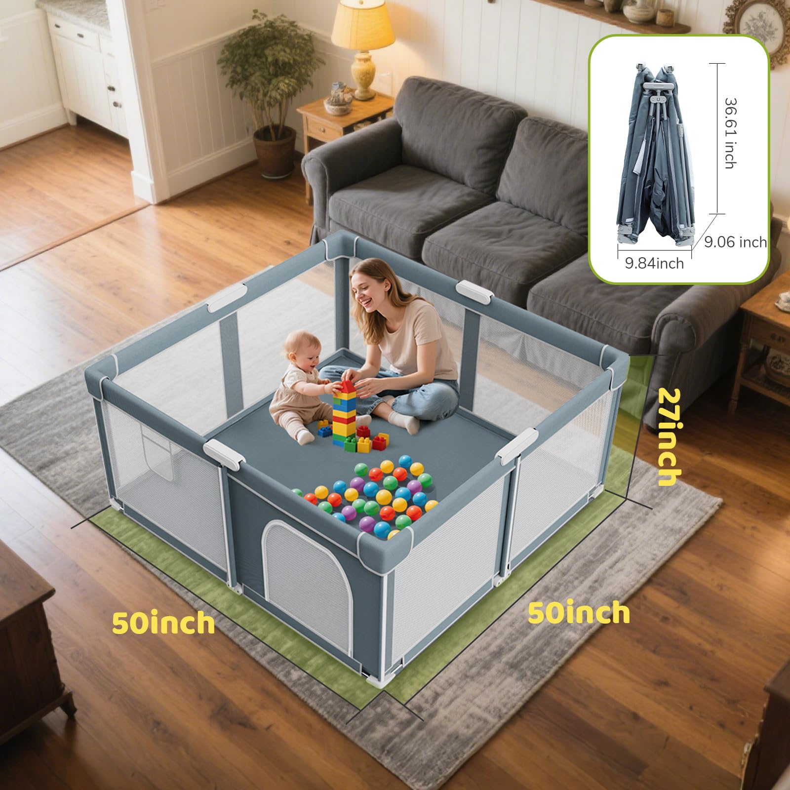 【Comfortable Play Area】The size of 50x50 inches meets every family and creates an extremely safe play space for your baby.The normal size is also fully accommodating for any needs of your baby and parents such as playing inside the enclosure.Enough space for toys, balls, blankets or anything you can think of.Provide safety for your baby's growth and exploration and let your baby enjoy the fun inside the enclosure.