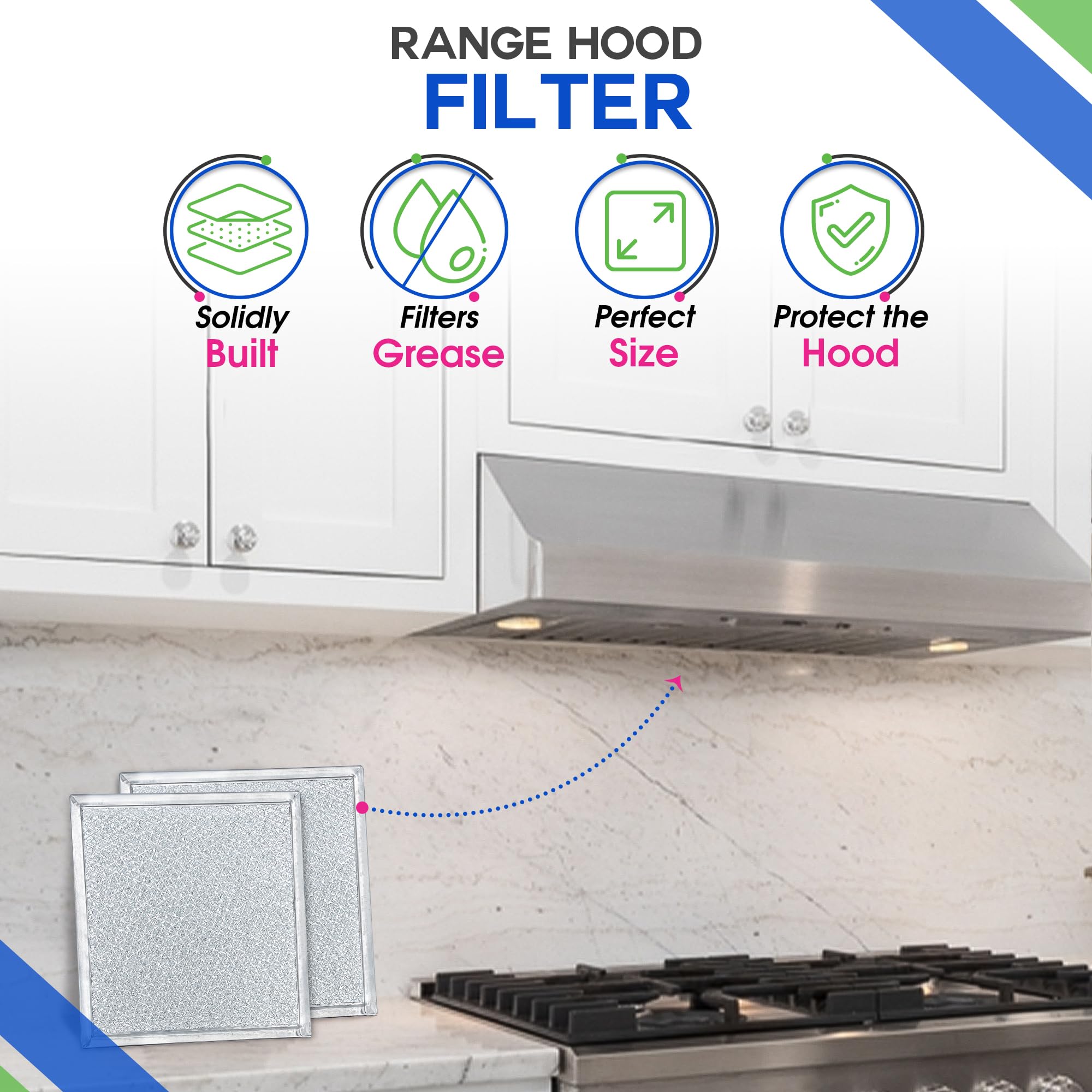 PROTECT YOUR HOOD: This aluminum hood vent filter will protect your Ventline range hood vent from grease coming in while cooking, keeping the vent clean and functioning at top performance.