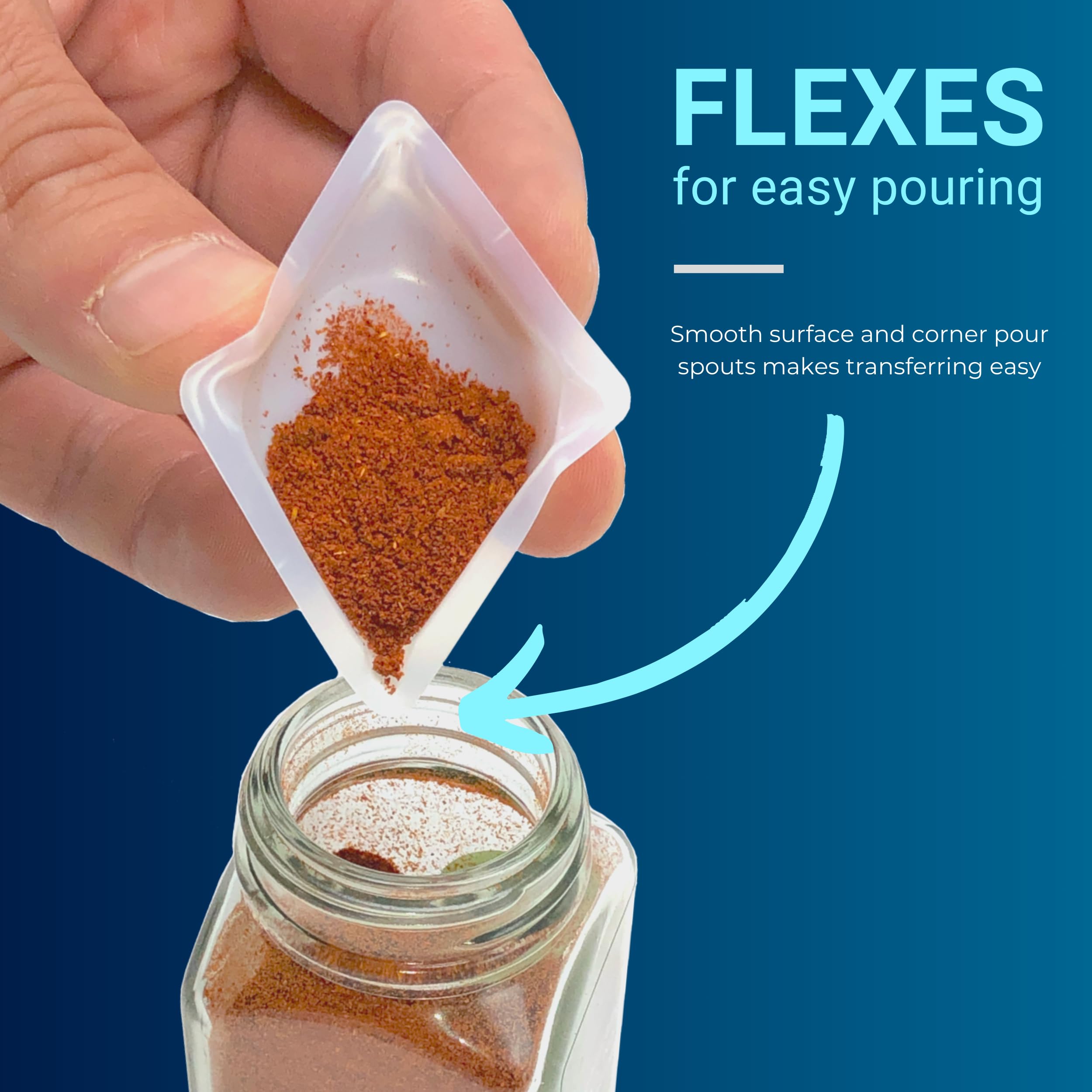 Flexible, Easy-Pour Design. Features a spout at every corner for seamless, precise pouring control of powders and liquids. Weigh Dish is biologically inert and resistant to dilute and weak acids, aqueous solutions, alcohols, bases and common laboratory solvents.