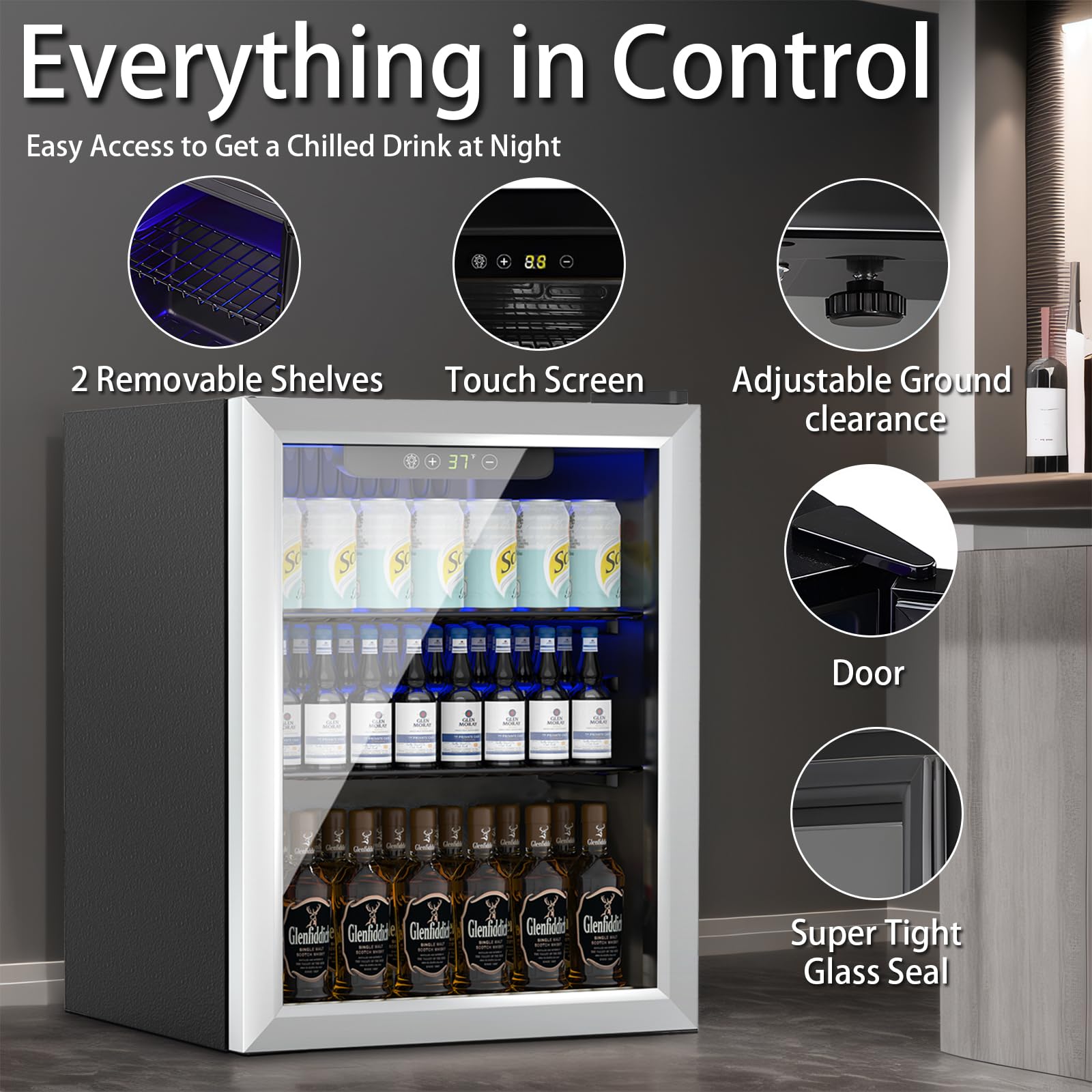 Flexible Space Design-The Beverage Refrigerator able to partition space usage with removable shelf, help you store and categorize Beer Soda or Wine in separate layers. With adjustable feet, you have more options when choosing where to place your mini cooler. It’s the perfect solution for any size kitchen, home, bar, or dorm room