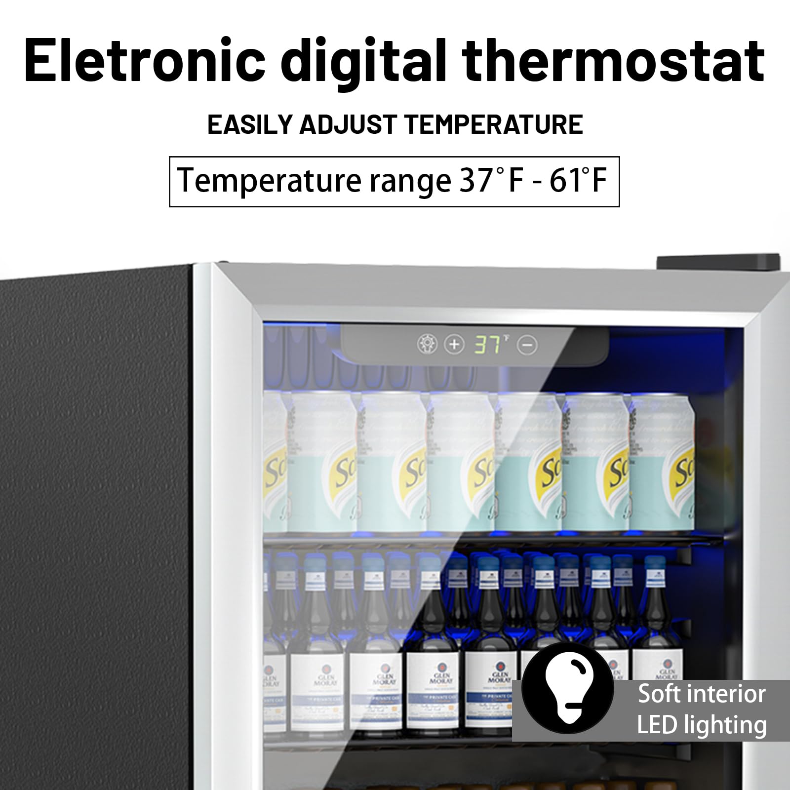 Quiet + Advanced Cooling System- The powerful compressor based cooling system ensures cool quickly and no noise. Beverage fridge only emits less than 40 db volume during operation. With our small fridge, you won’t just enjoy cold drinks, you’ll have a quiet environment too