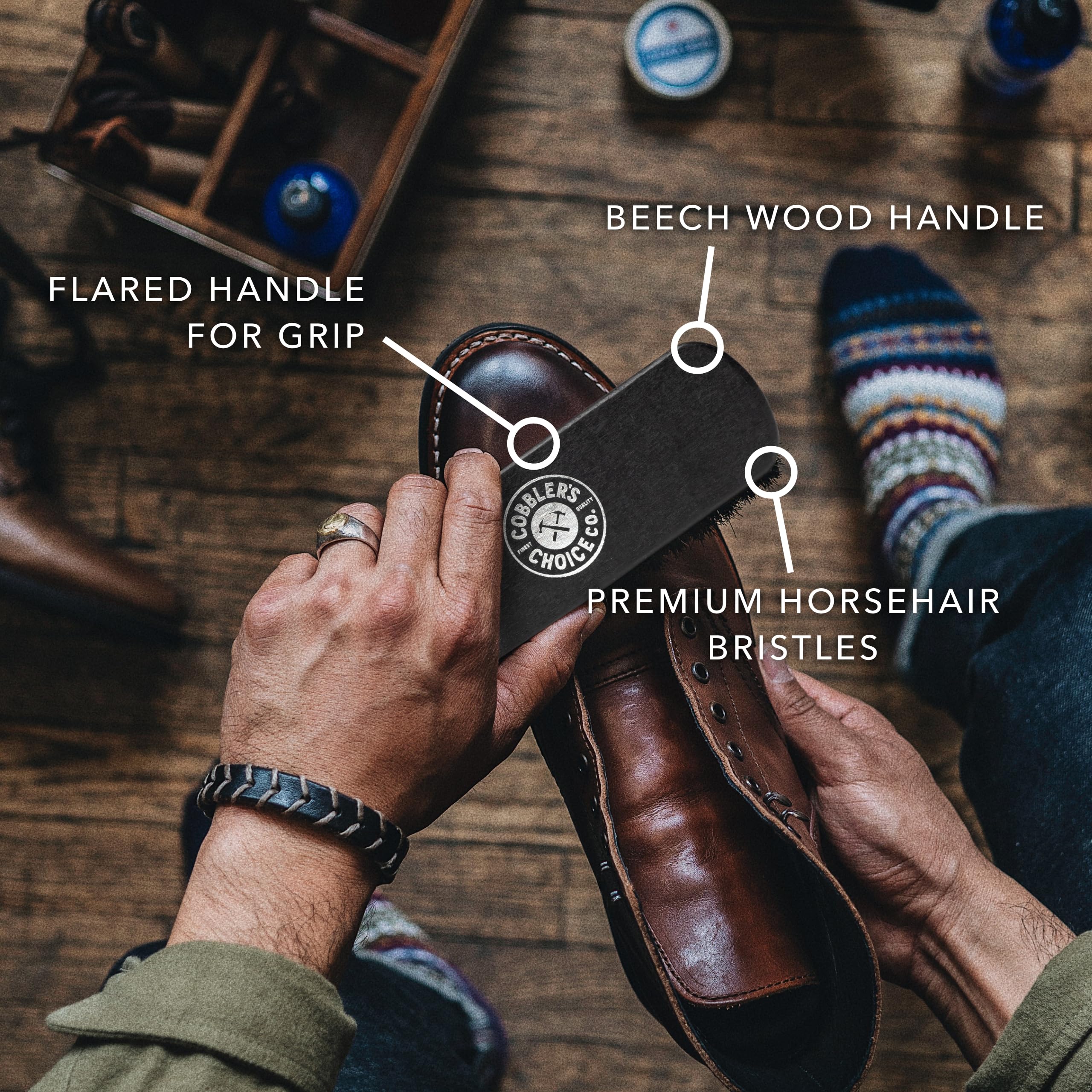 DESIGNED FOR THE COBBLER -- We've designed this brush with premium Horsehair Bristles that effectively buff, shine, and clean, while being delicate enough to not scratch the leathers surface. The sturdy bristles swiftly dislodge dirt while raising the fibers of the leather leaving you with a beautiful shine!