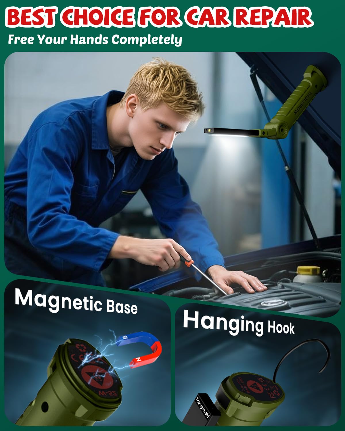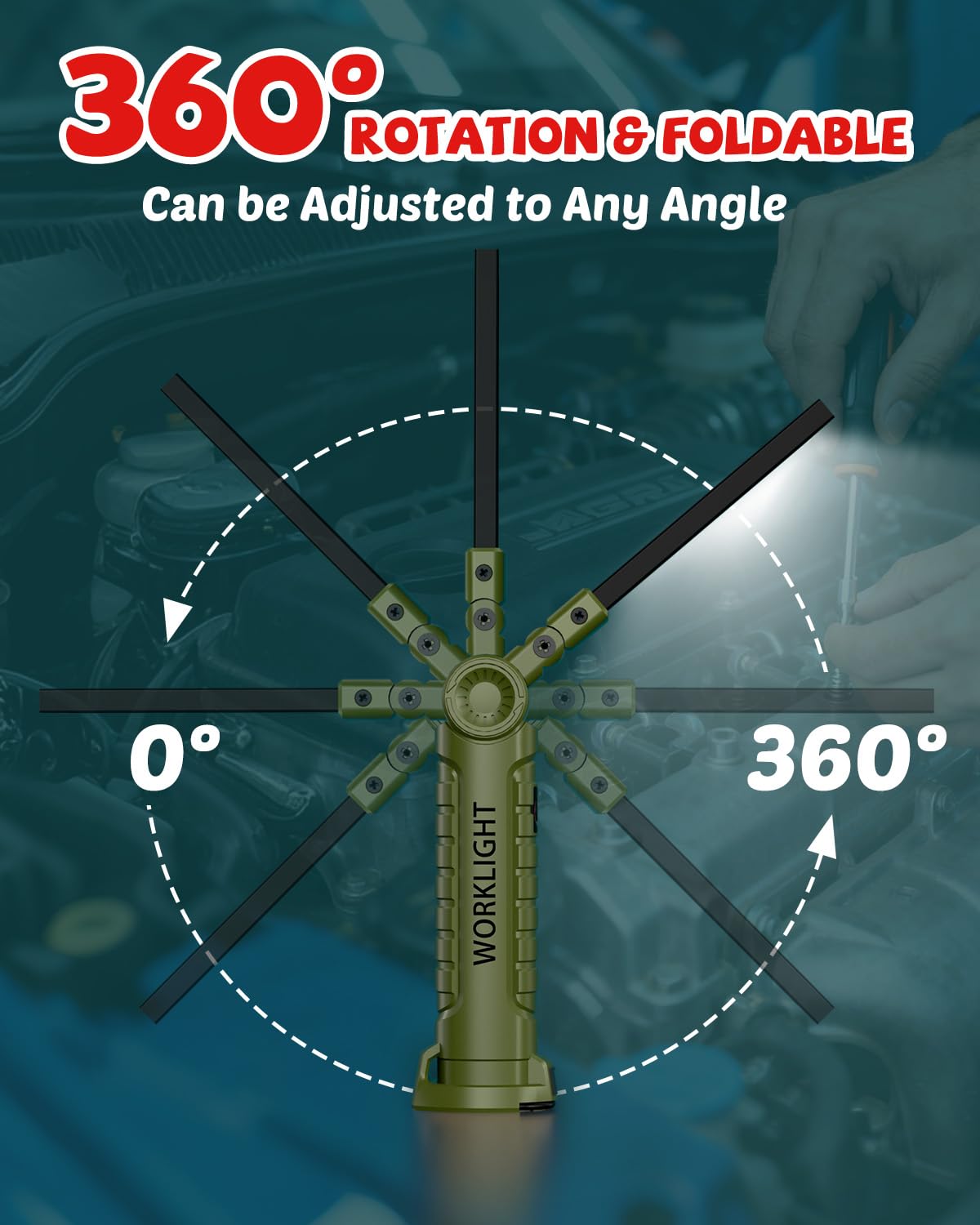 360 Degree Rotary, Magnet Base & Hook: 360 degree rotate provide multi-angle illumination, magnet base and hook make your hand free to do other things in the night. It can be used for BBQ, camping, reading, car repair and any other things you would want to do at night.