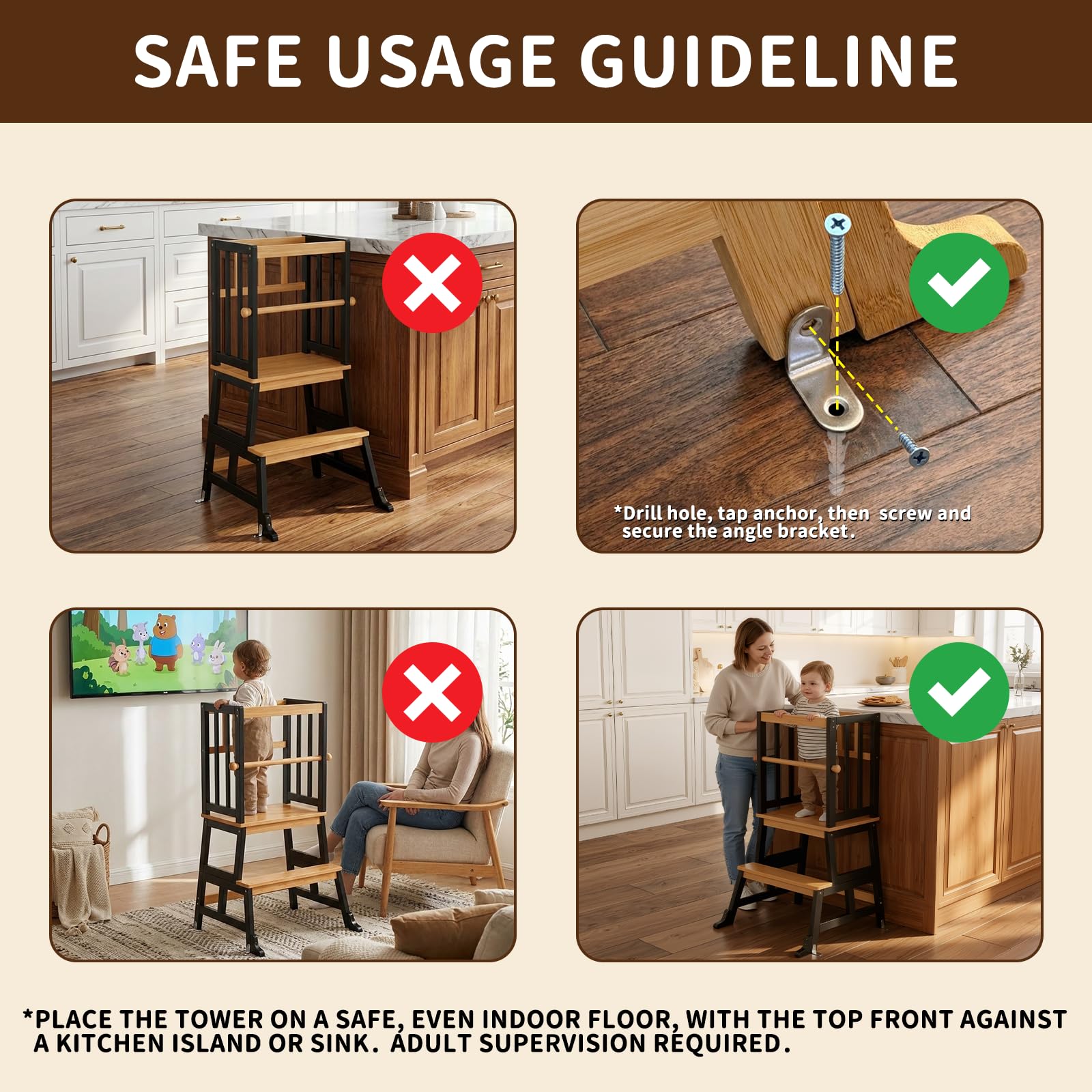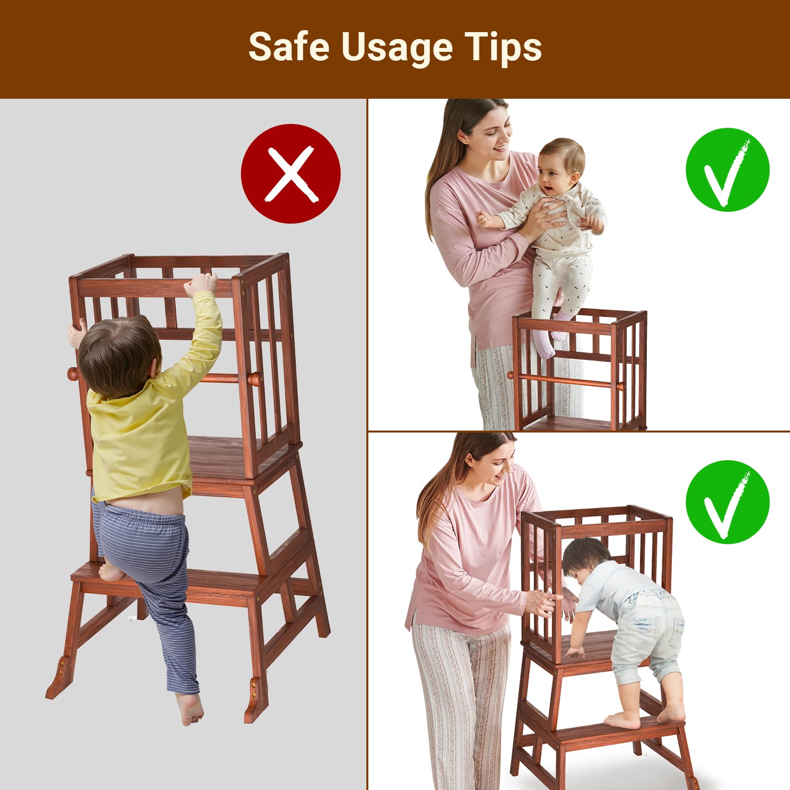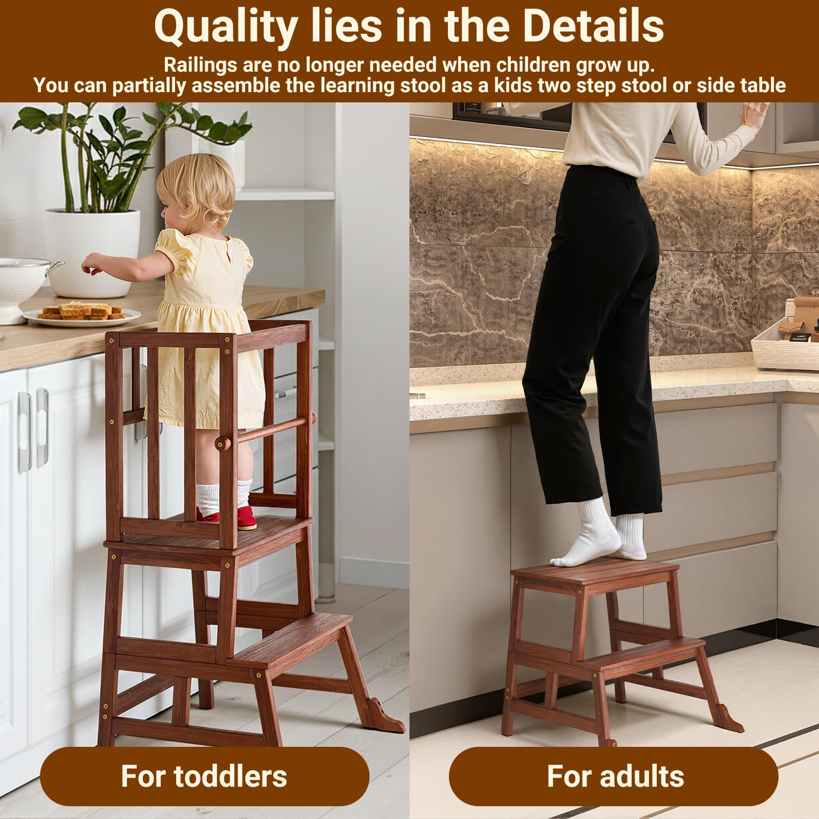 Made to Last: This sturdy tower stool for learning is made from solid natural material with a child-safe, meticulous finish that prevents scratches and scuff marks. Safely supports 150 lbs for toddlers 18 months to 3 years old