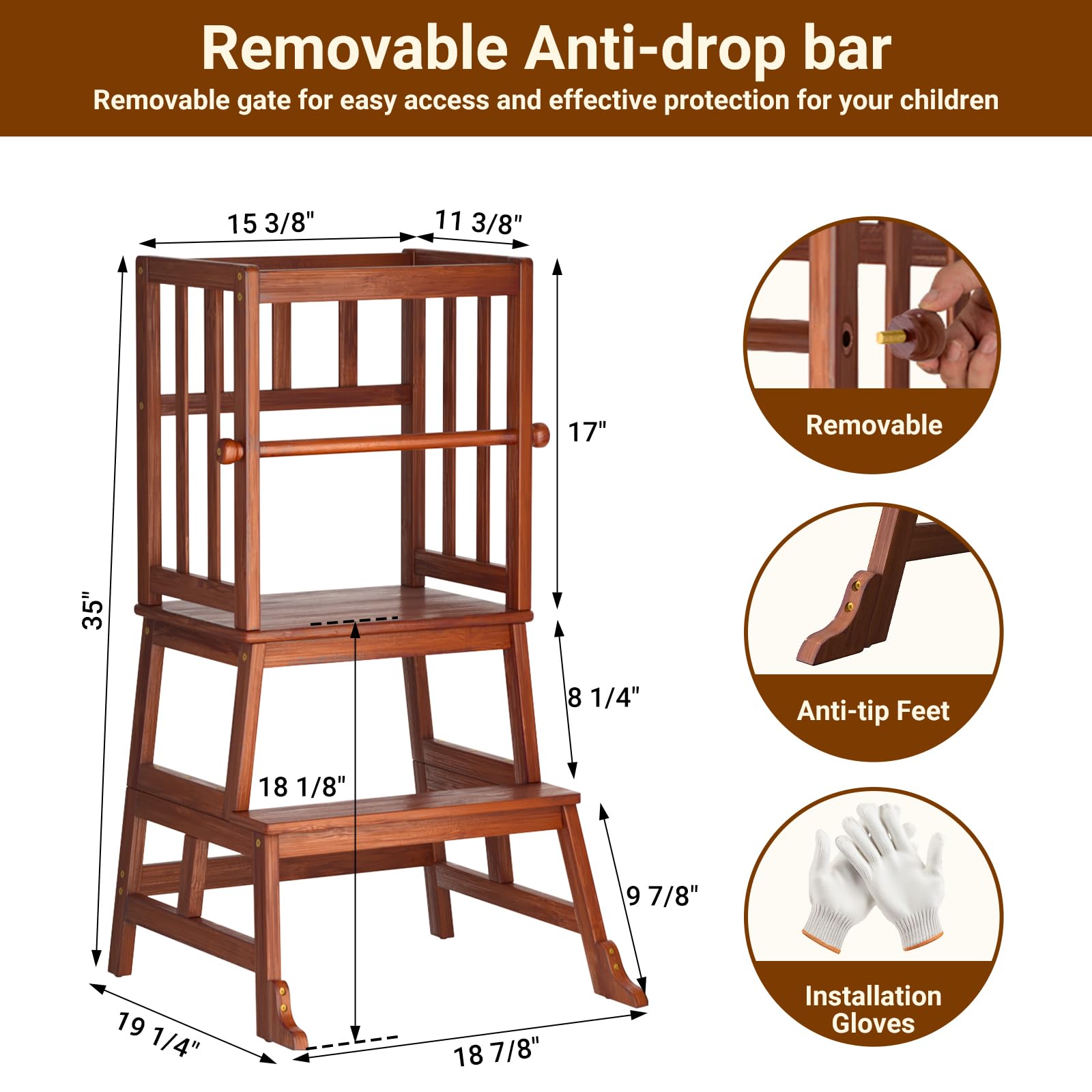 Unique Patented Design: Our Kids Kitchen Step Stool enjoys the CPC certification (Children's Product Certificate) issued by the federal government. Removable Anti-Drop Railing Safety Rail design has a unique patented design (Patent No: USD1,007,881S)