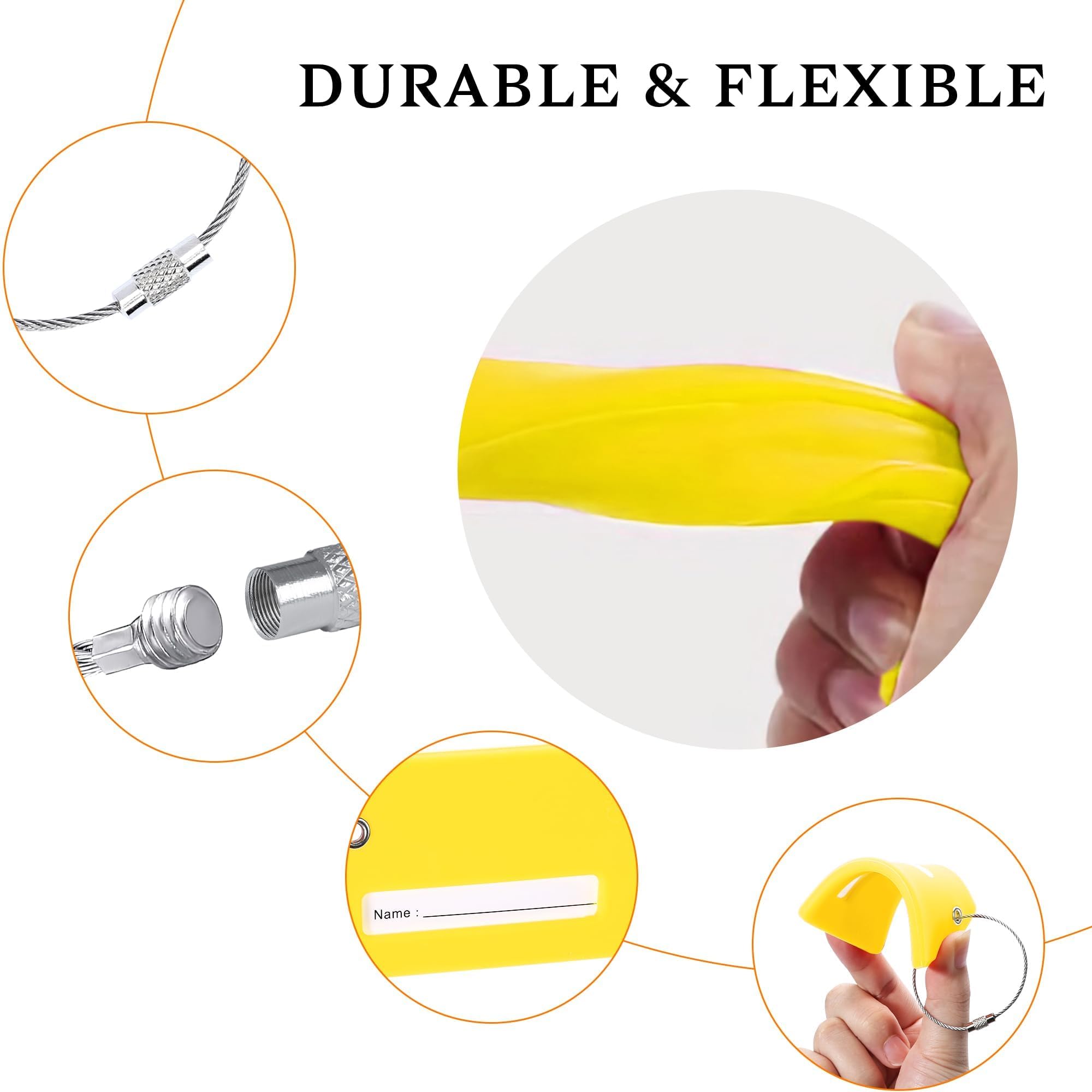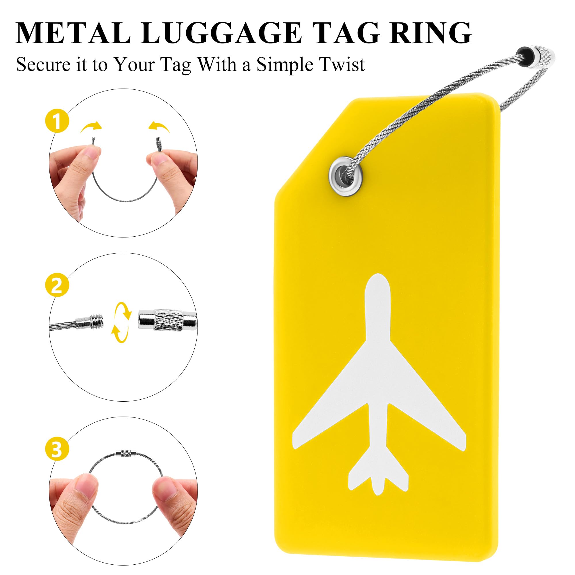 Built to Last: Our luggage tags are crafted from resilient, bendable silicone, designed to withstand bumps and drops from careless airport staff; The reinforced metal hoop ensures your tags stay securely attached to your belongings at all times