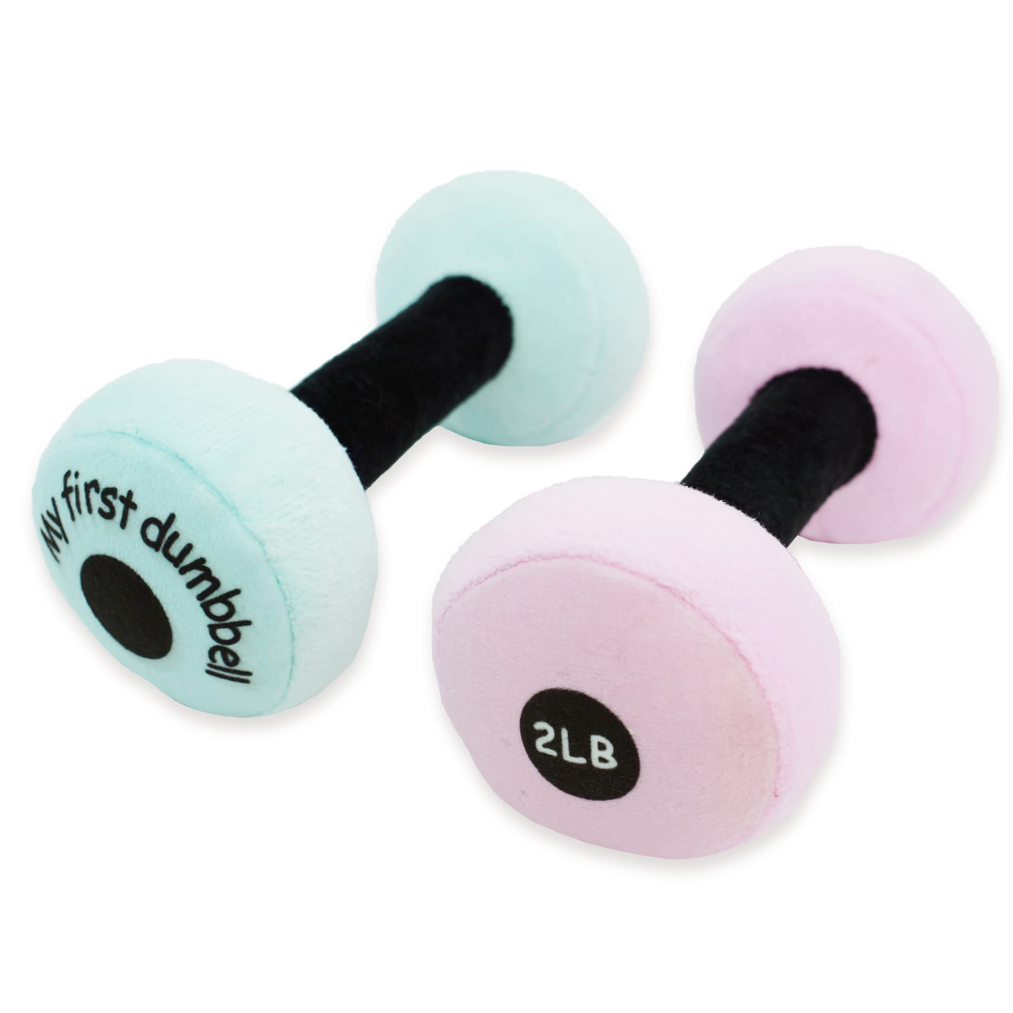 SAFE FOR KIDS: The fabric material is high quality ultra soft plush.The dumbbell toys are hand-made and have no sharp parts which may cause a hazard. The plush soft dumbells are 100% safe for your newborn infant, baby, or toddler.