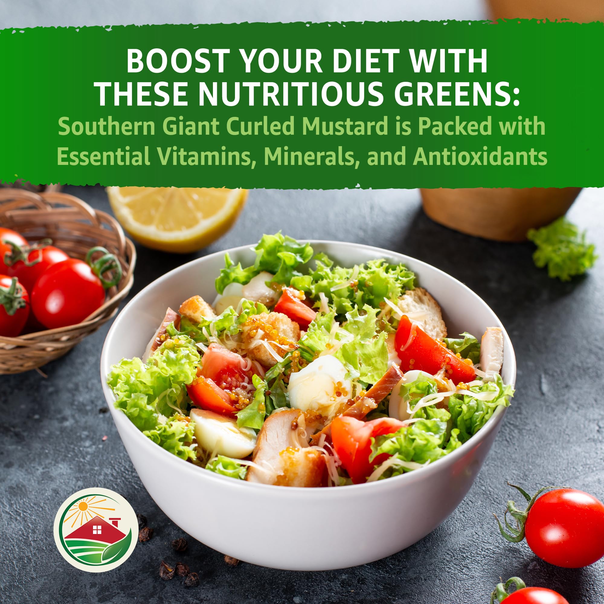 DELICIOUS MUSTARD GREENS: Southern Giant Curled mustard greens bring a peppery flavor and nutritious punch to your meals. Enjoy these flavorful greens fresh from the garden or add them to your favorite dishes for a unique twist.