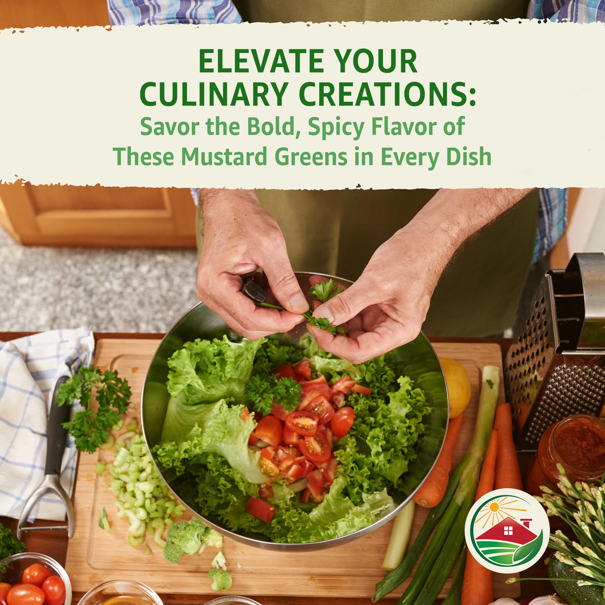 NUTRIENT-PACKED GREENS: Rich in vitamins and minerals, mustard greens are a healthy addition to your diet. Their nutrient-dense leaves offer a fresh, homegrown boost to salads, smoothies, and cooked dishes.