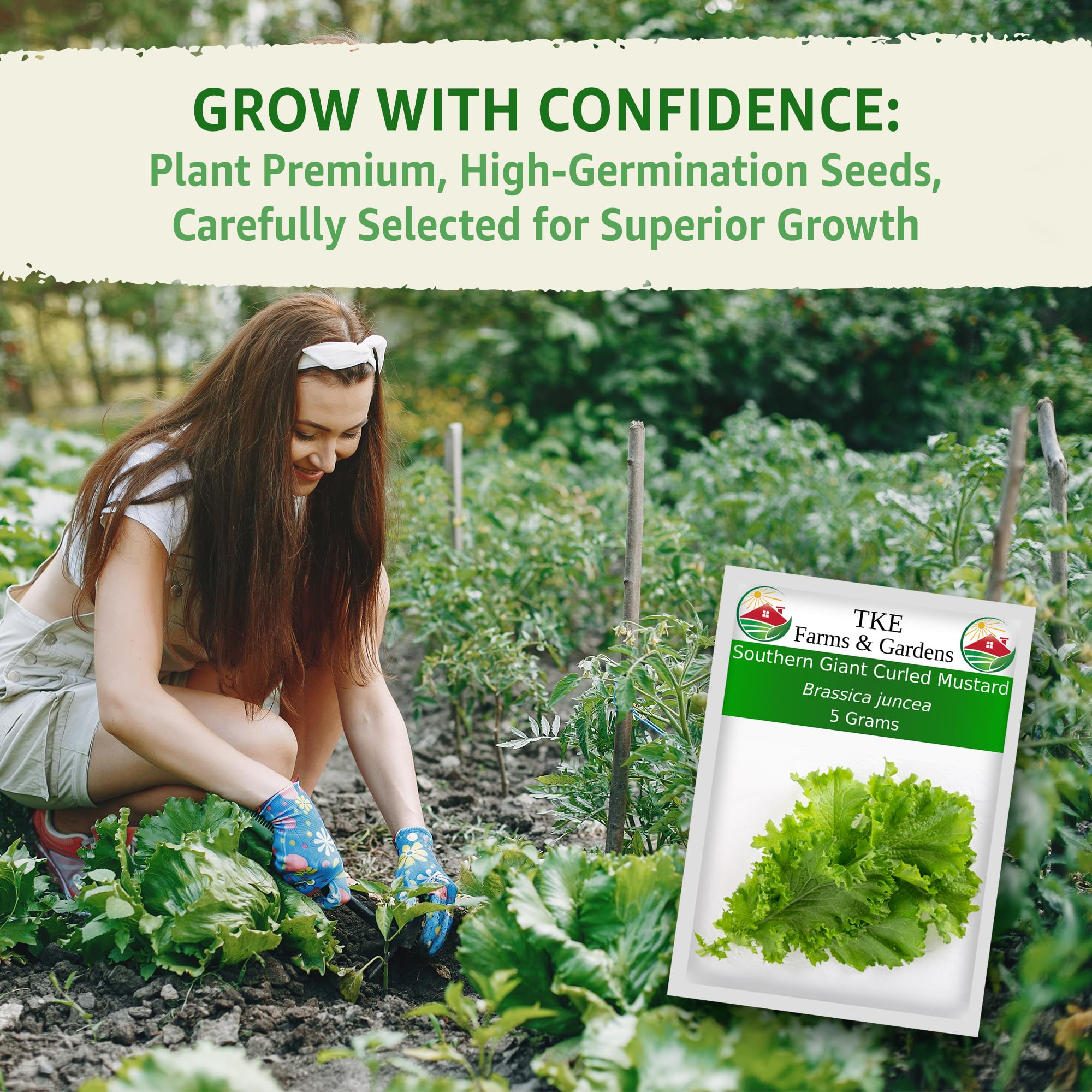 HIGH GERMINATION RATE: Grow nutritious Southern Giant Curled mustard greens with confidence! Our 2000+ Non-GMO heirloom mustard seeds, selected for high germination, yield a lush harvest perfect for salads, sautés, and classic Southern dishes.