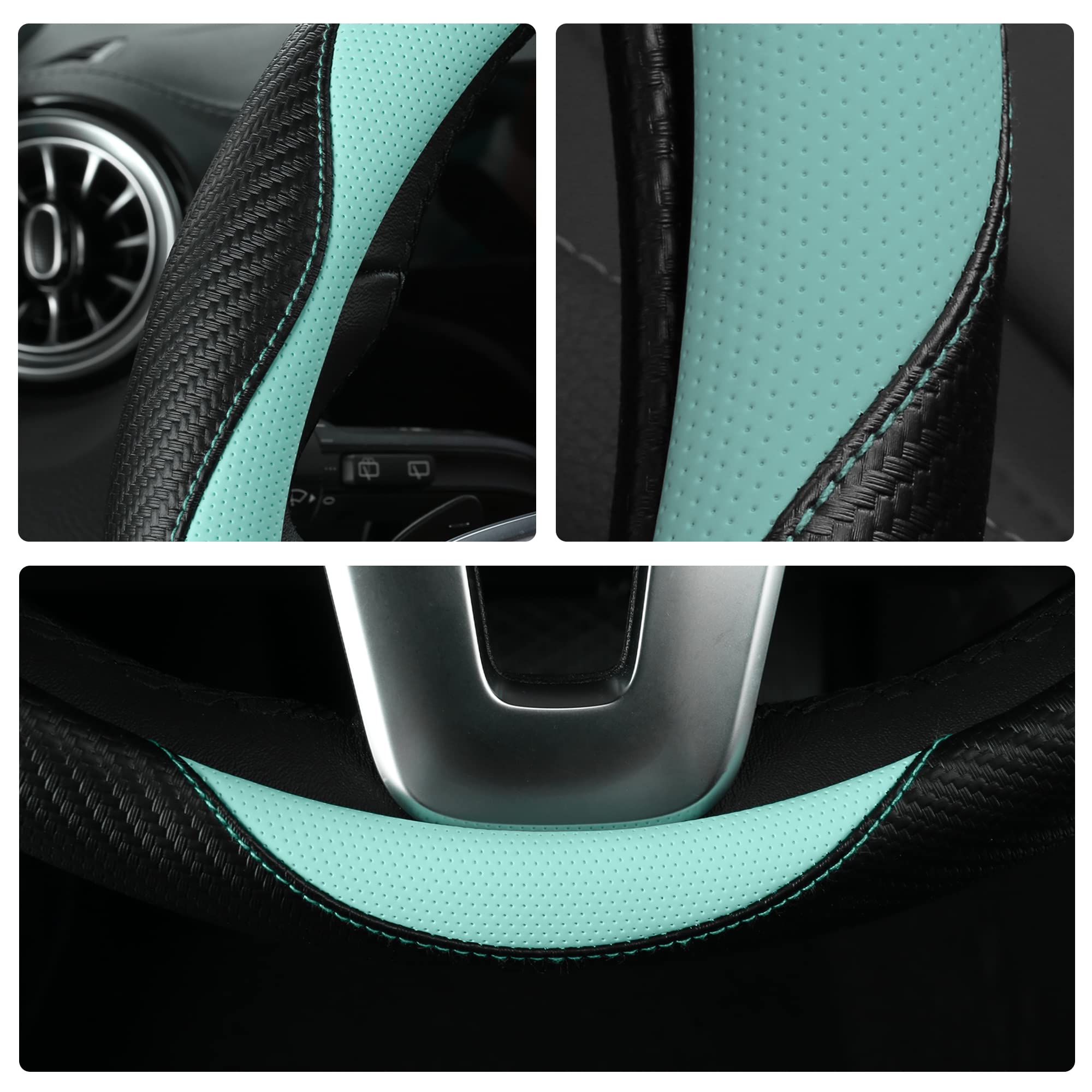 ♛【Easy To Install】- Durable & easy to install, just align the cover on the top of the steering wheel, then pull tight the cover from top to the side, then two side to bottom. Twist the cover and adjust it.