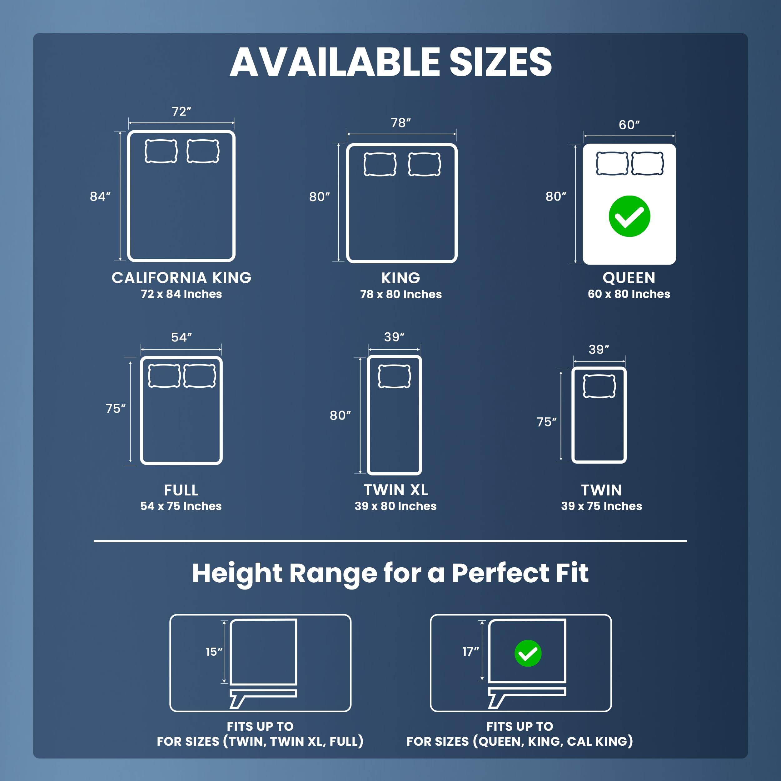 Mattress Protector - Fits Queen size mattress perfectly with dimensions 60 inches by 80 inches by 17 inches, featuring professionally turned hems and deep fitted pockets