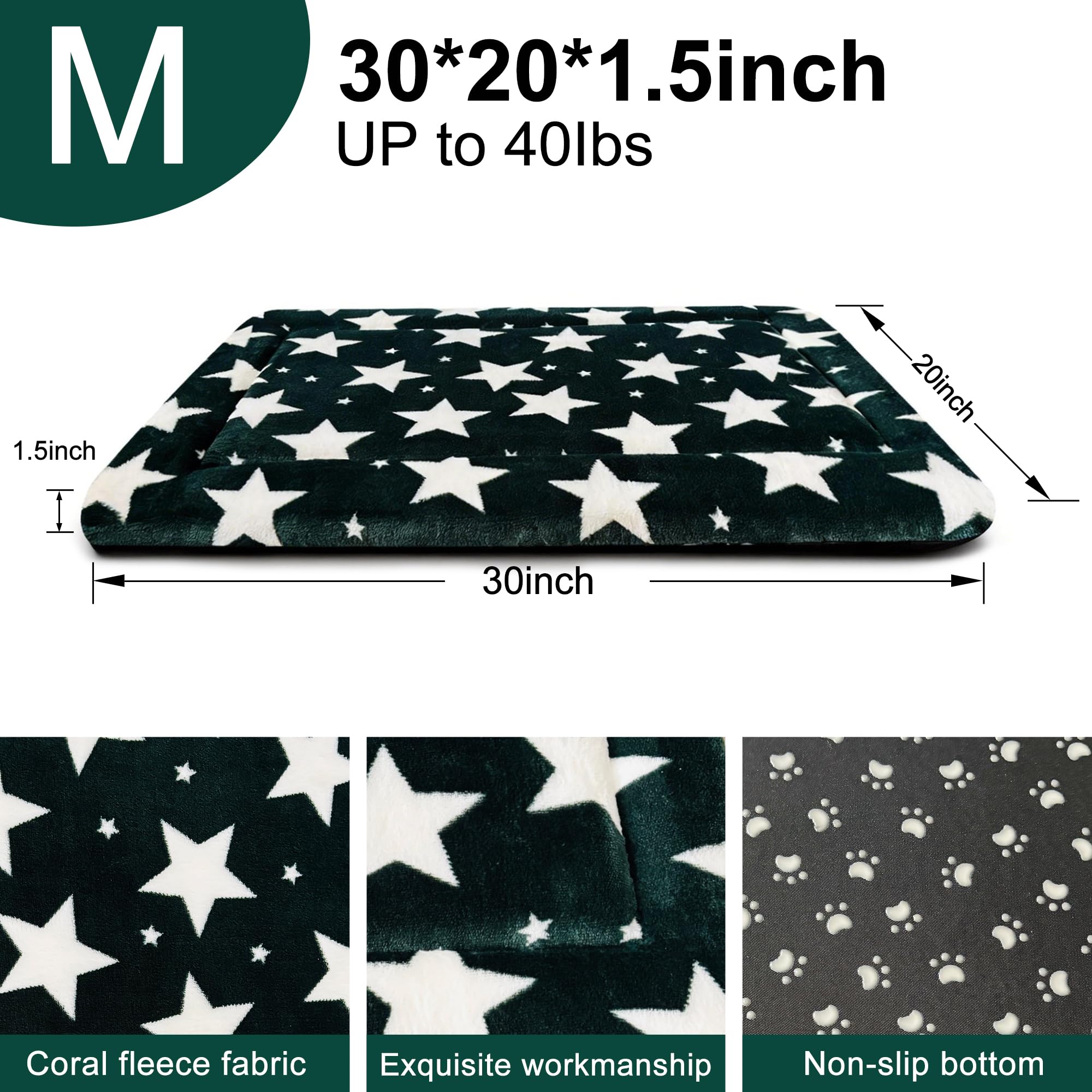 Size Details: Transform your pet's comfort with our M size dog crate pad, measuring approximately 30"L x 20"W x 1.5"H. Perfectly designed for small medium dogs up to 40 pounds, it offers a plush, supportive surface that’s just the right thickness for a cozy rest.