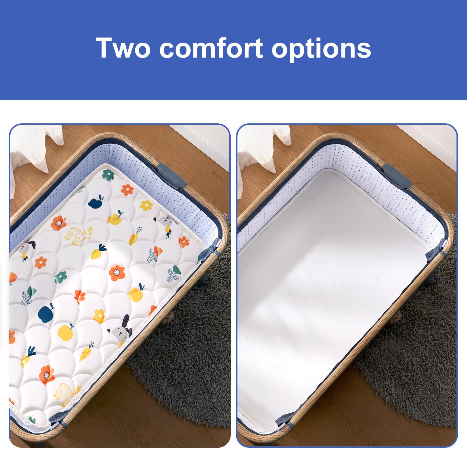 Humanized Rounded Corners & Fine Solid Edges: bassinet mattress has better support and stability when the baby rolls over, it is firmly impossible to cause the edge to sink, thus preventing the risk of bodily injury and suffocation.