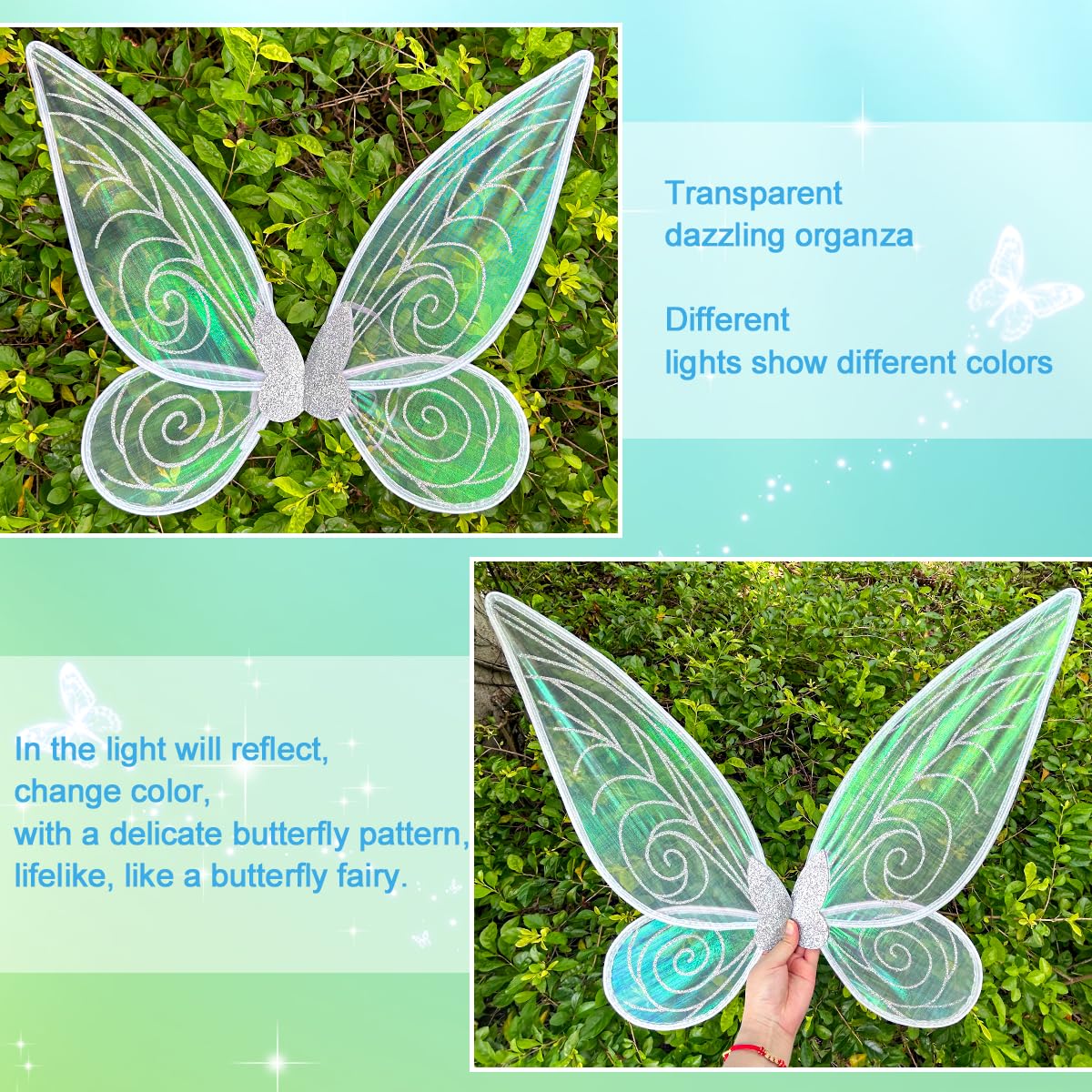 【Comfortable to wear】Fairy wings are made of organza,light weight and there will be no sense of weight when worn,perfect for girls and women.Organza has a magical gradient effect in wings,brilliant colors are reflected by different lighting.