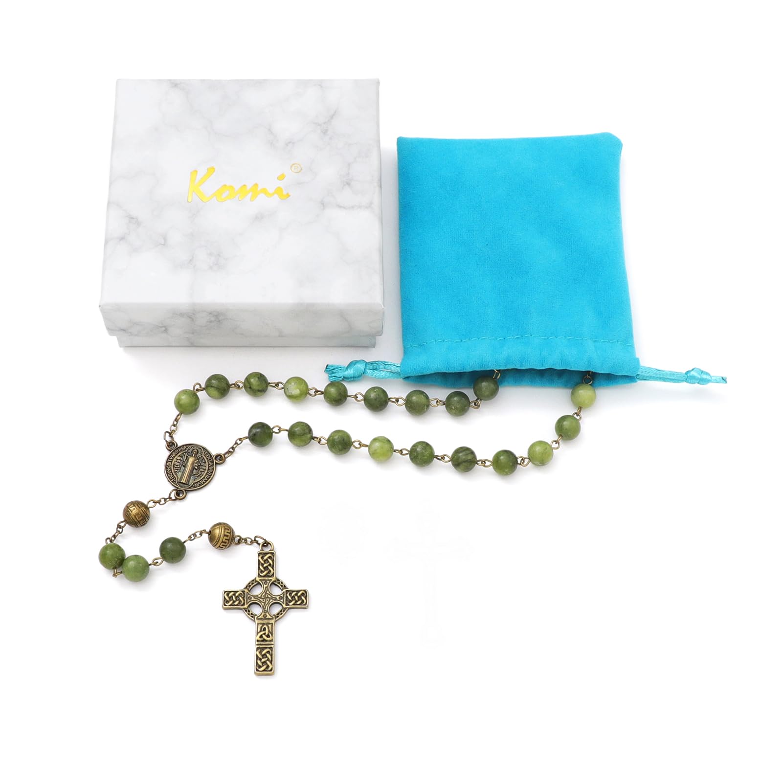 KOMI Natural Southern Jade Rosary Necklace Handmade 8mm Stone Rosary Beads for Men Women Rosarios Catolicos Para Mujer