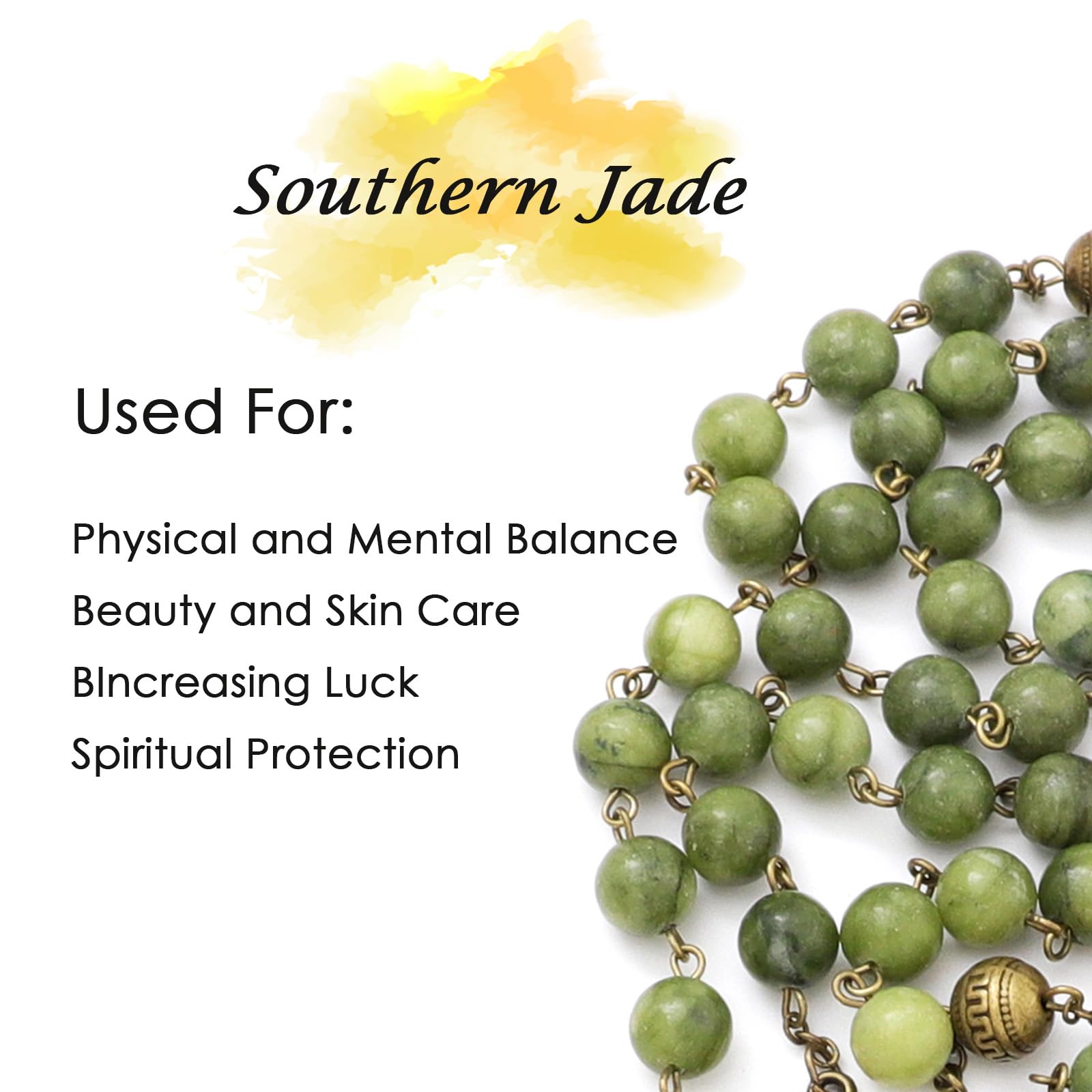 Natural Stone: The Hail Mary Beads are made of 8mm Southern Jade gemstone beads, while Our Father Beads are made of zinc alloy metal beads making it convenient to identify the completion of a decade