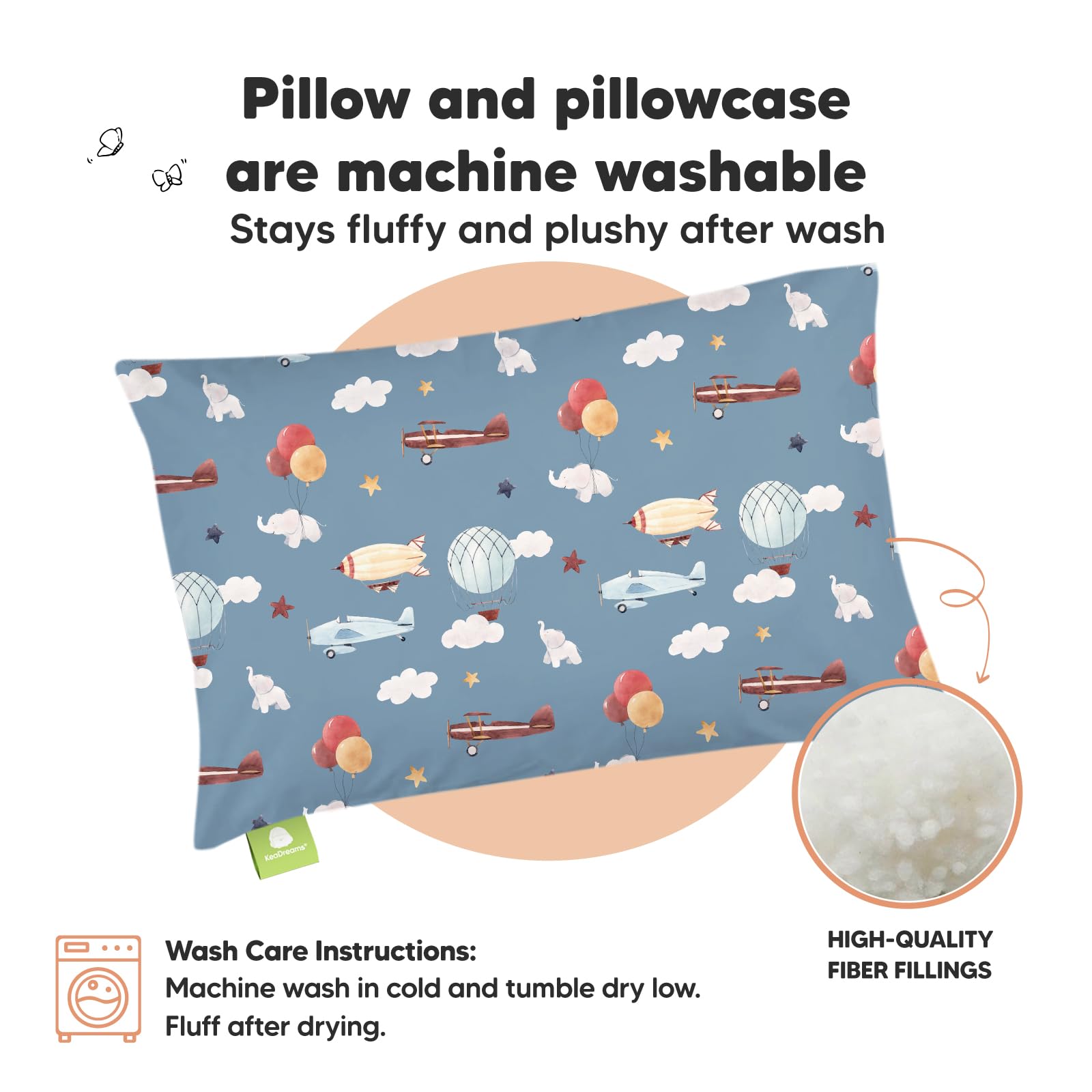 Durable & Washable - Our toddler pillows and toddler pillowcases are machine washable and dryable for easy cleaning. Made from high quality organic cotton pillow cover and fiber fillings, this small pillow stays fluffy, fresh and cute for regular use.