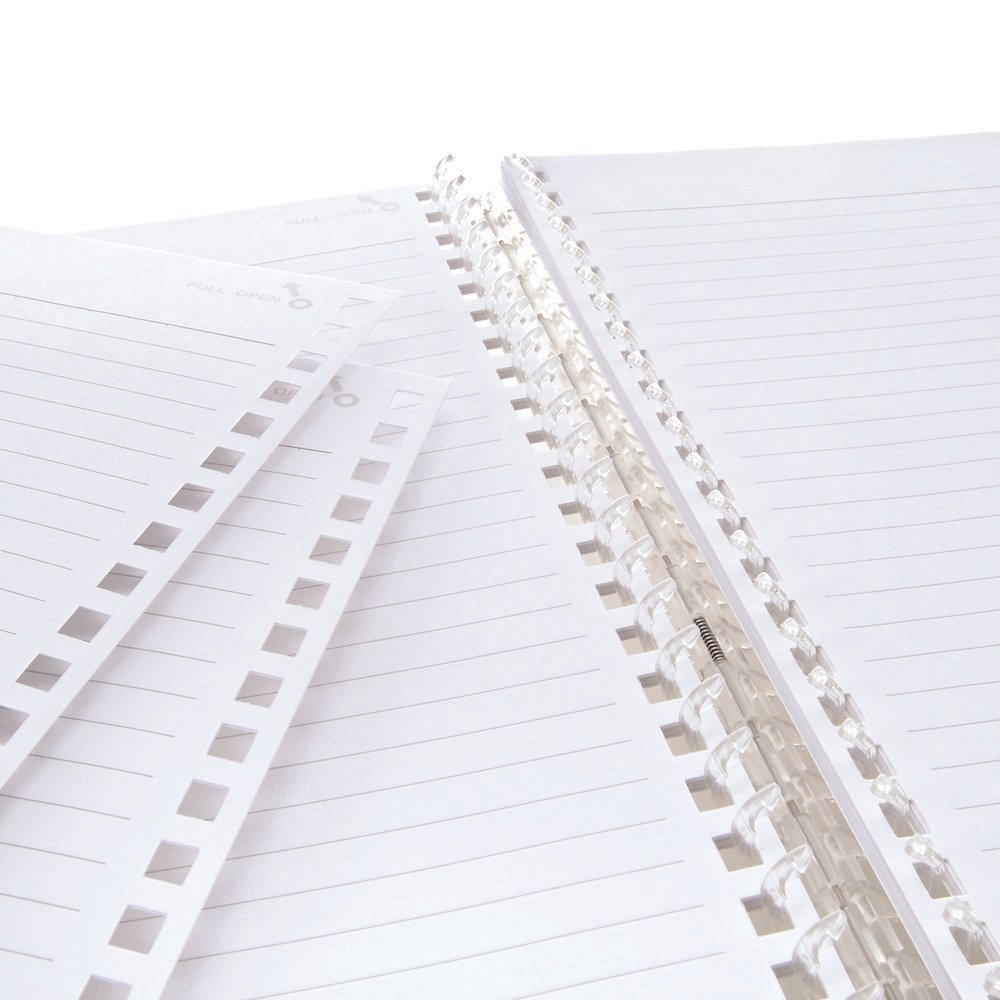 This twist ring notebook allows you to file away your notes and memories without tearing off pages! employing a unique mechanism, the rings come unhooked by placing pressure on both the top and bottom of the notebook while pulling away. It keeps your note sheets organized without the usual mess from torn pages. It also provides an easy exchange process among friends and colleagues; neatly transfer pages from one notebook to another, and keep refilling your notebook with fresh new sheets. You can choose from variety of colors with a clean, light design.