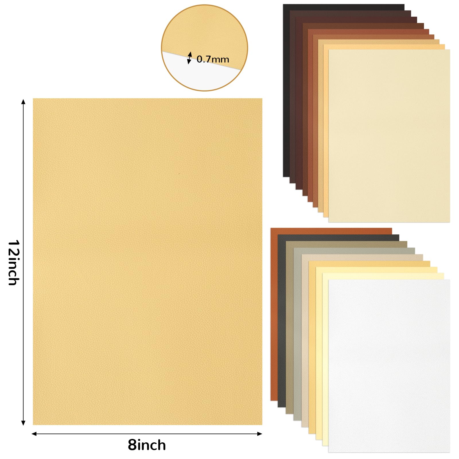 【Material】 Faux leather fabric sheets, made of high quality pu, cotton back finish, measures as 8.2" x11.8"(21cm x 30cm) and 0.7 mm thickness, 1 sheet per color and 18 sheets in total.