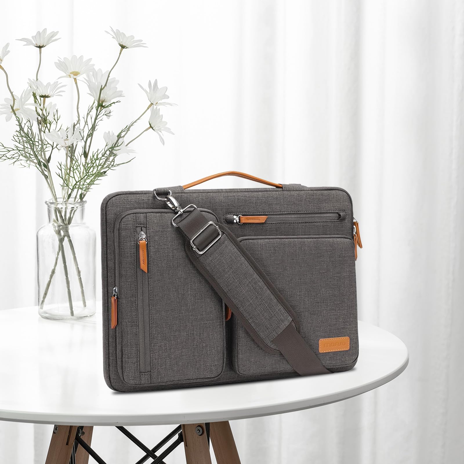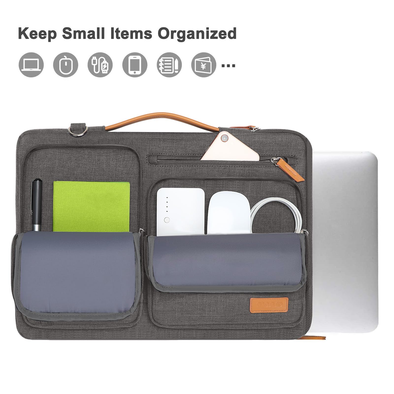 The Laptop Sleeve Bag with Handle & Adjustable Shouler Strap. Removable and adjustable padding shoulder strap with a shoulder pad varied from 28.54 inch to maximum 52.56 inch. You can use it as shoulder bag, laptop carrying case, sleeve bag, handle bag, messenger bag, crossbody bag and briefcase in whatever way you like. Extendable PU handle design makes it to carry your laptop around in comfort, you can also tuck away the handle