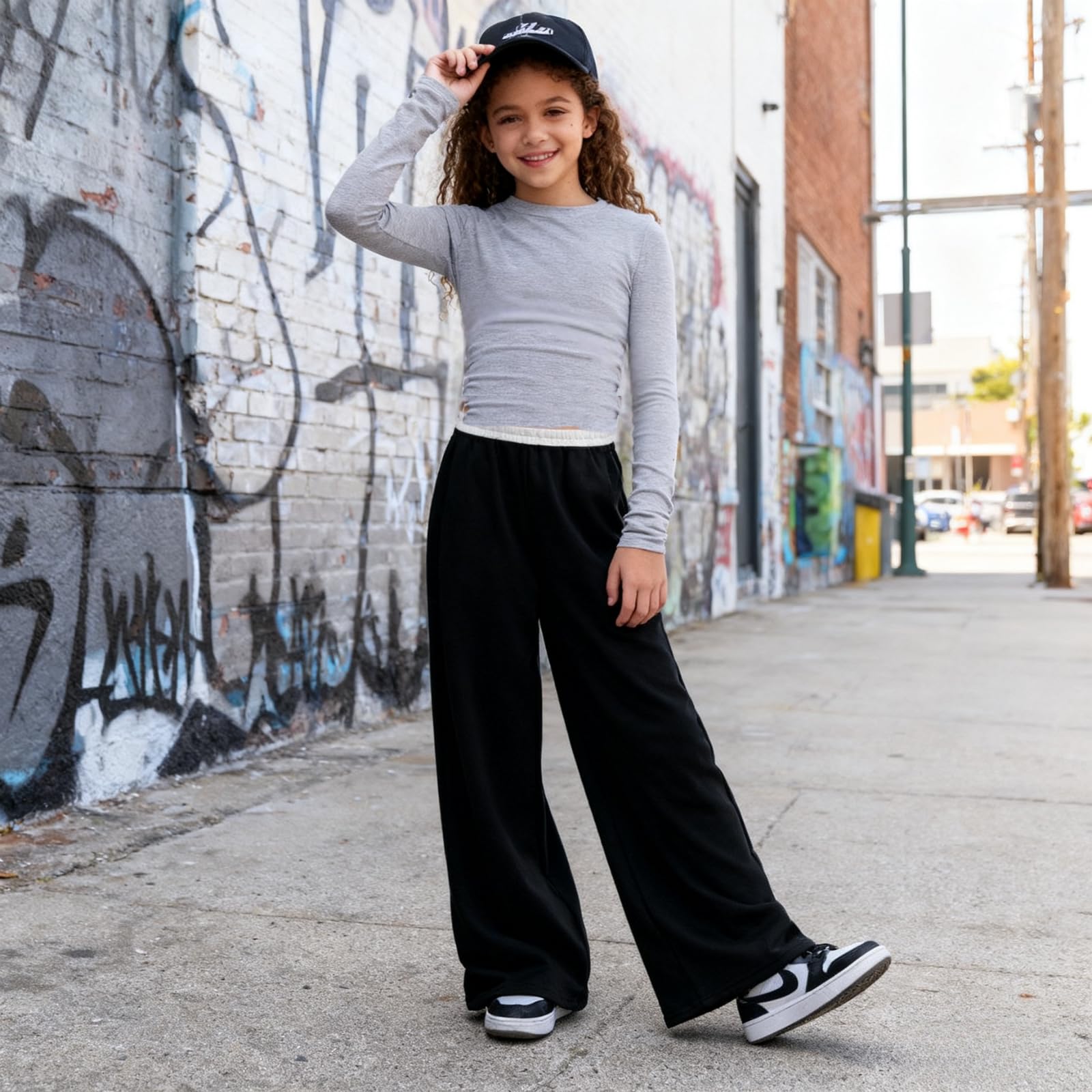 Unique Design: This girls' set features a solid-color cute waist-cinching White Long Sleeve Top paired with high-waisted pants, creating an elegant and adorable outfit that enhances your child's grace and beauty.