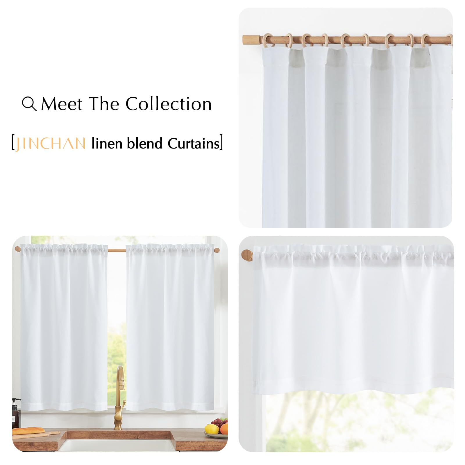 Neutral Decor: These cafe curtains are crafted from linen blend fabric. Natural linen look add a farmhouse charm to your window. Soft and breathable fabric keeps light and airy. The neutral color with linen textured create a country looking.
