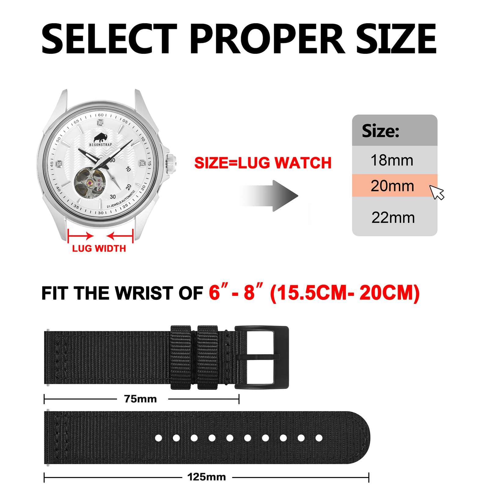 Size Selection: Compatible with traditional or smart watches with standard lug width of 18mm, 19mm, 20mm and 22mm. Please accurately measure your watch lug width before ordering. Size=Watch Lug Width