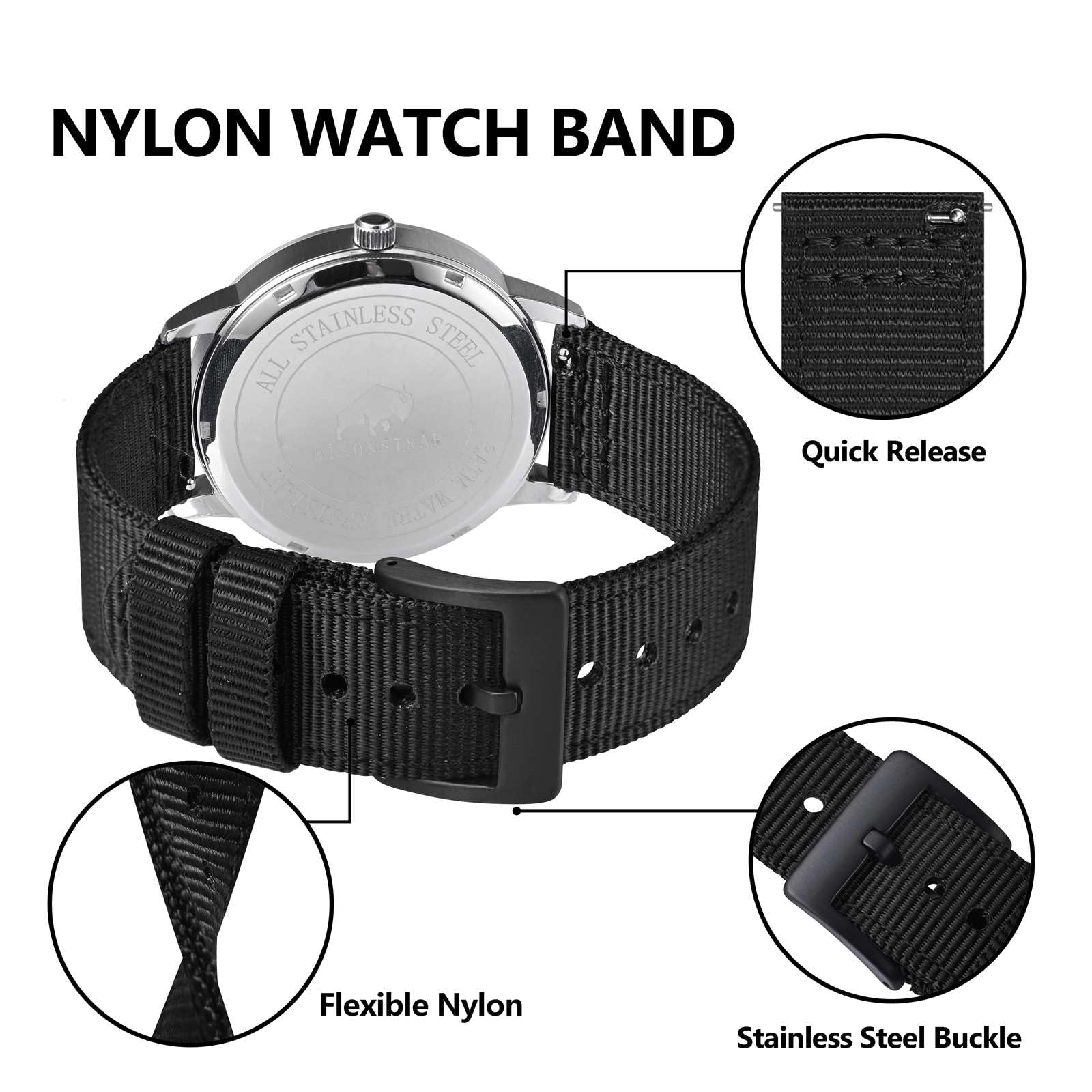 Flexible and Comfortable: Made of tightly weave nylon fabric, this watch strap is soft, breathable, lightweight, washable and quick drying, paired with a sturdy brushed stainless steel buckle, suitable for various occasions
