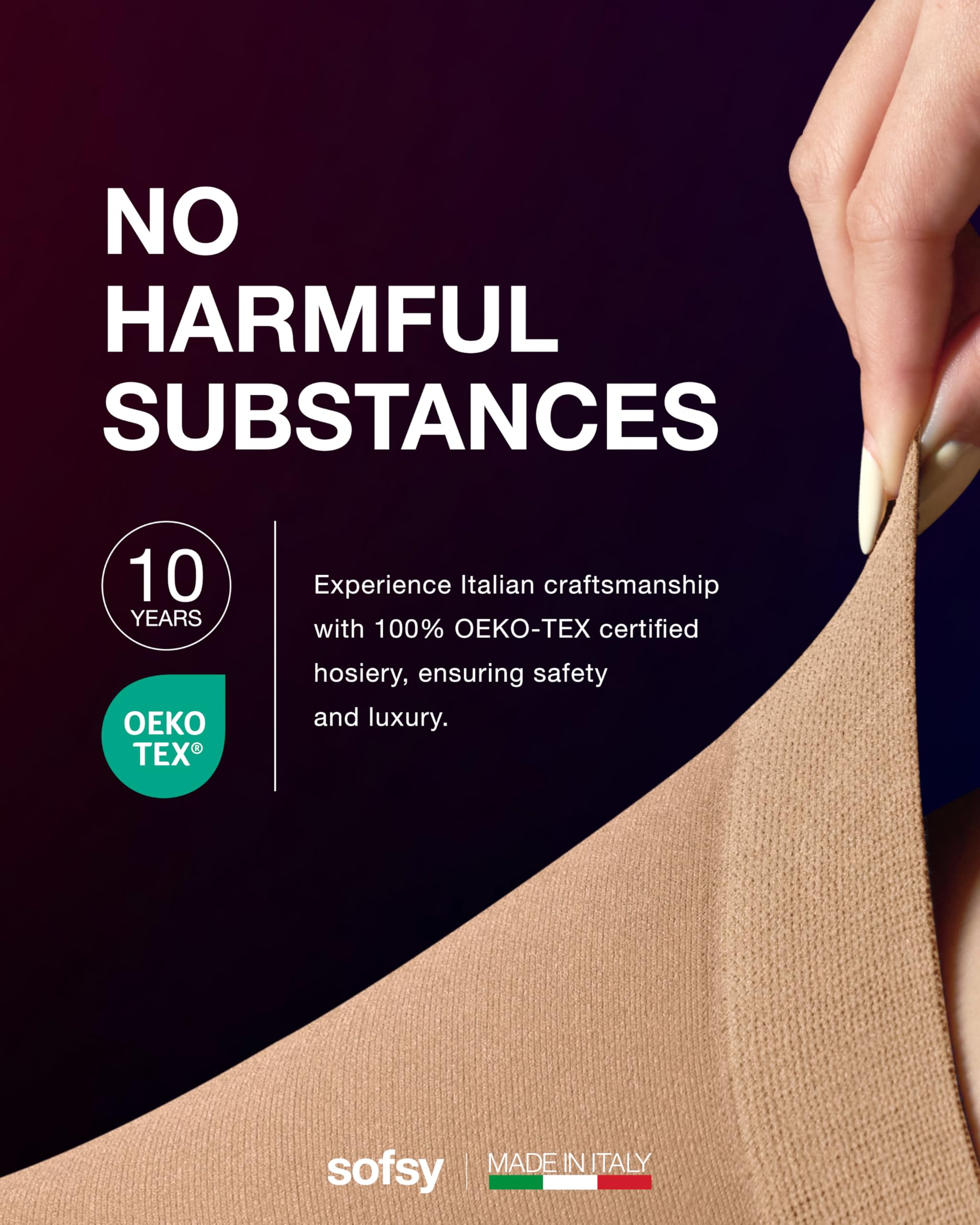 3rd Party Certified Safety: Experience 10 years of Italian hosiery craftsmanship with 100% OEKO-TEX certified tights, ensuring safety and softness. These solid color tights are durable and skin-friendly — designed for those who value quality and comfort.
