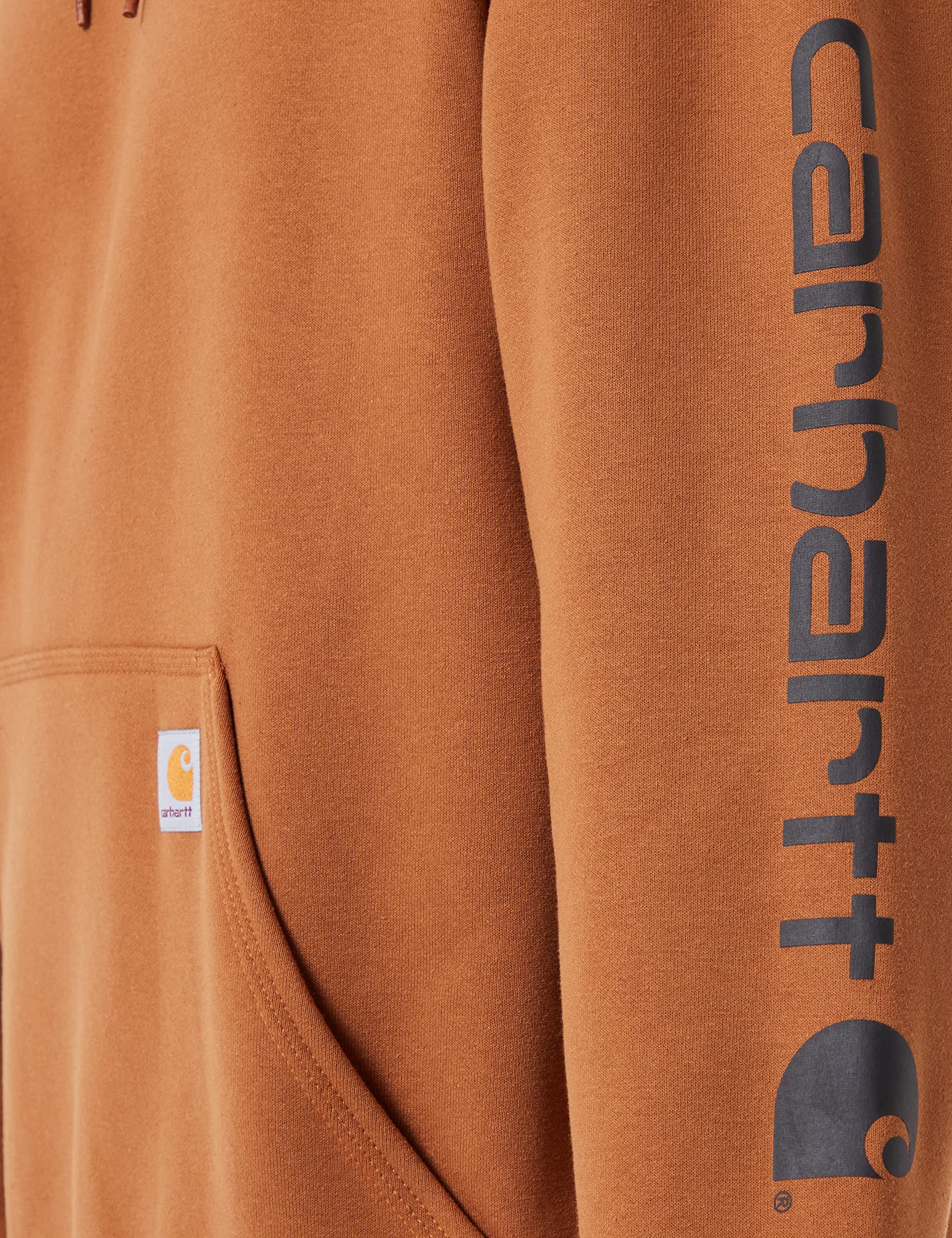 Description Product Description Carhartt's midweight hooded logo-sleeve sweatshirt comes in great colors. Made of a 10.5-ounce, 50% cotton/50% polyester blend, it features an attached hood with draw-cord closure, front hand-warmer pocket, spandex-reinforced rib-knit cuffs and waistband. The carhartt logo is printed on the sleeve and a logo patch is sewn on the pocket. Product Care:Machine wash cold with like colors, Do not bleach, Tumble dry low remove promptly, Do not iron ornamentation From the Manufacturer Our midweight hooded logo-sleeve sweatshirt comes in great colors. Made of a 10.5-ounce, 50% cotton/50% polyester blend, it features an attached hood with draw-cord closure, front hand-warmer pocket, spandex-reinforced rib-knit cuffs and waistband. The Carhartt logo is printed on the sleeve and a logo patch is sewn on the pocket.