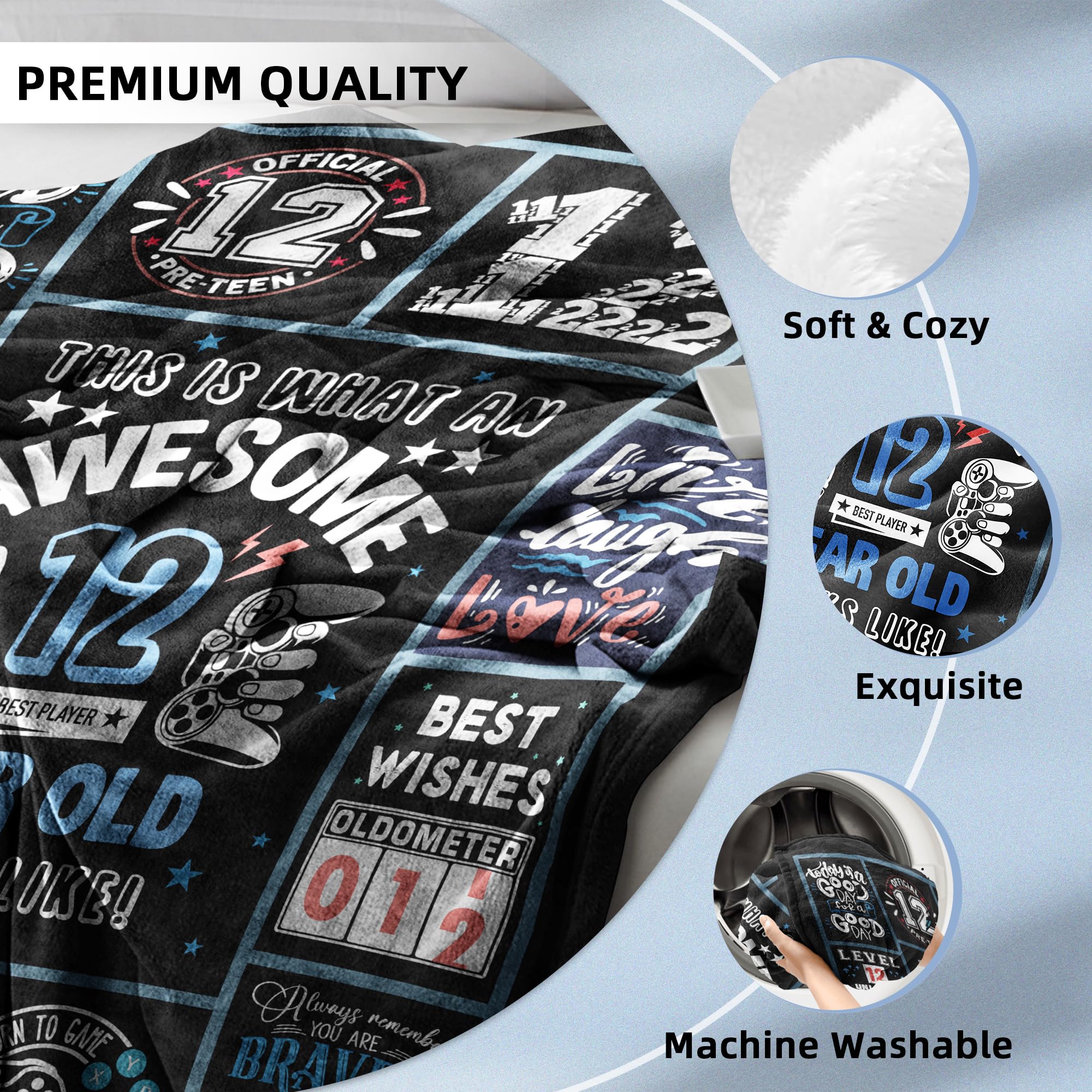 Turning 12 is an important milestone, too, they are growing up, and they will have new dreams and imaginations. so make the special day even more memorable with our elaborate birthday present for boys. Dimensions: 60"L x 50"W (152*127cm) Design: Rich colors, bright patterns, and single-sided printing. Material: Made of polyester, our gifts for a 12 year old boy provide years of softness and warmth. Suitable for sofa, living room, bed, car, bedroom, indoor, outdoor and so on. Washing Instructions: Simply dry clean or machine wash gently with cold water and tumble dry at low temperature to keep it fresh and soft for years to come.