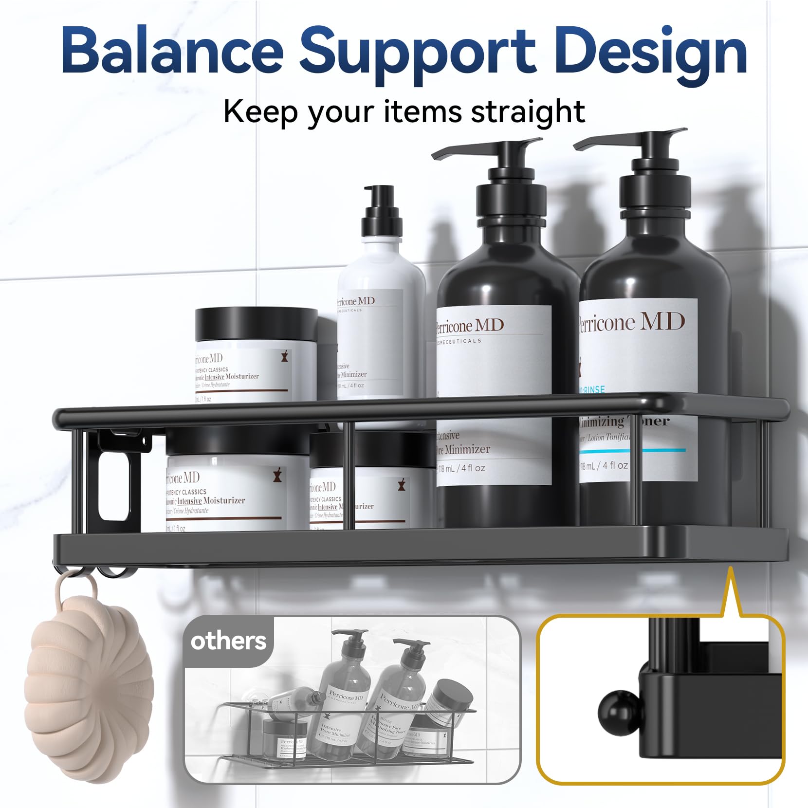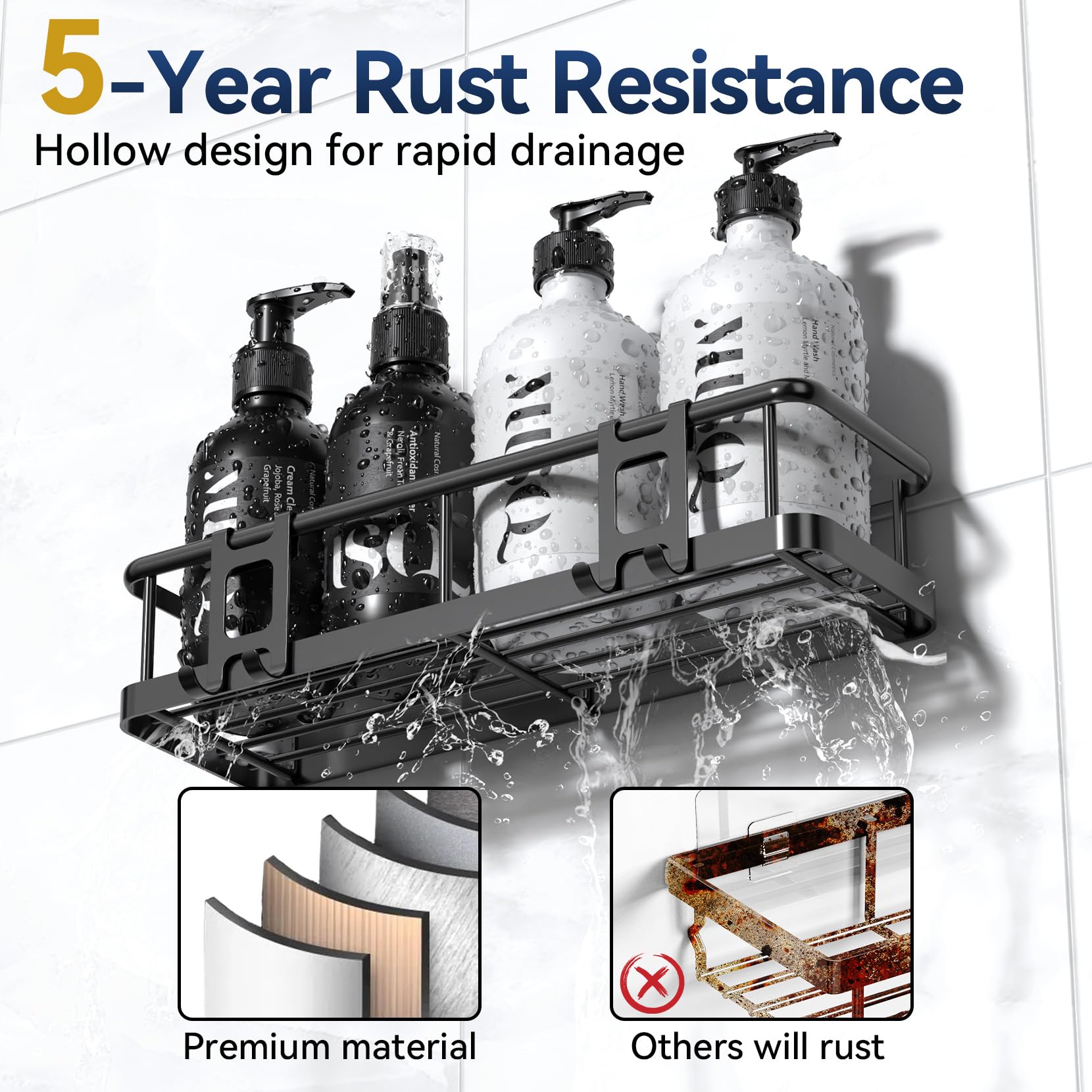 【Durable Metal, Hollow Drain Design】The bathroom shower racks are made of high quality metal, high temperature paint process, durable; Passed the 48-hour salt spray test, rust resistant, waterproof, scratch resistant, can accompany you for up to 5 years. Hollow design at the bottom, good ventilation and drainage, convenient cleaning. Keep shelves and bathroom necessities dry