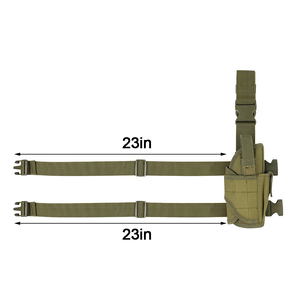 ADJUSTABLE: Drop Leg Holster can be fully adjustable for leg and fits 19-27” of thigh circumference. Fully adjustable wrap-around high thigh universal design for men and women.