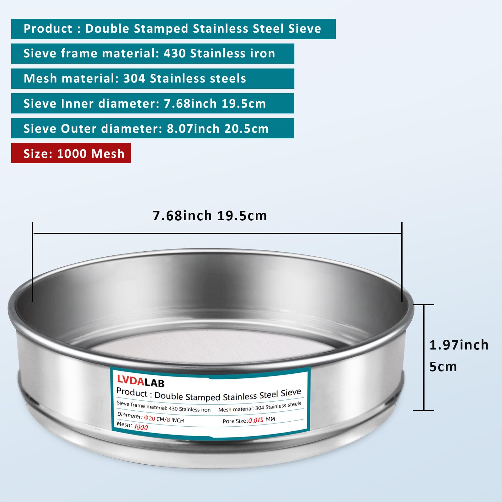 𝐒𝐢𝐳𝐞- The diameter of this lab sample sieve is 20cm/7.9in diameter which is much more larger than normal size, height 5cm/1.97''.