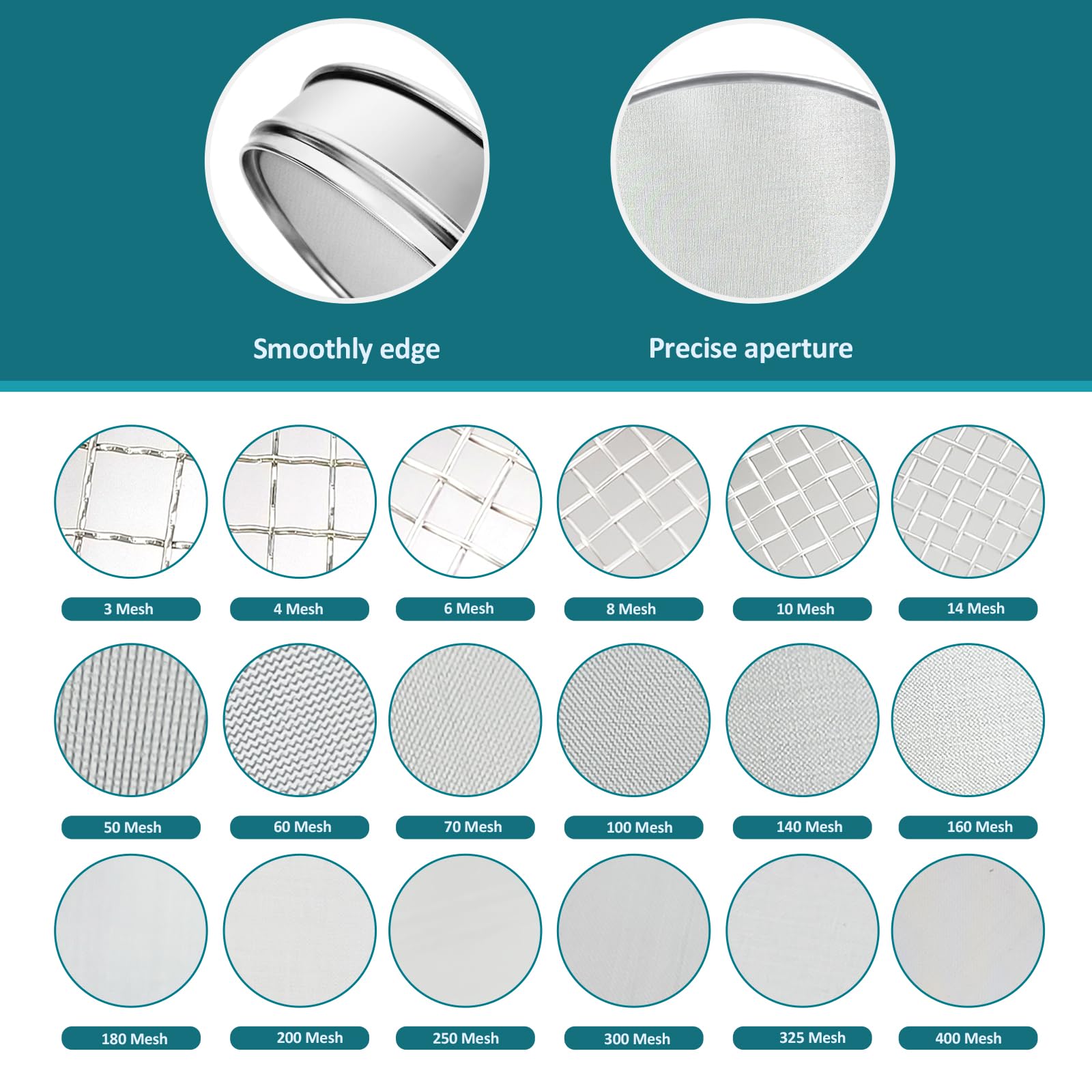 𝐌𝐨𝐫𝐞 𝐌𝐞𝐬𝐡 𝐒𝐢𝐳𝐞 𝐟𝐨𝐫 𝐂𝐡𝐨𝐢𝐜𝐞---There are more size options for your needs: 3/4/6/8/10/14/16/18/20/30/40/50/60/80/100/120/132/140/160/180/200/250/300/325/400/500/700/800/900/1000/1200/1400/1600/1800/2000/2400/2800 mesh and lab sieve pad with lid.