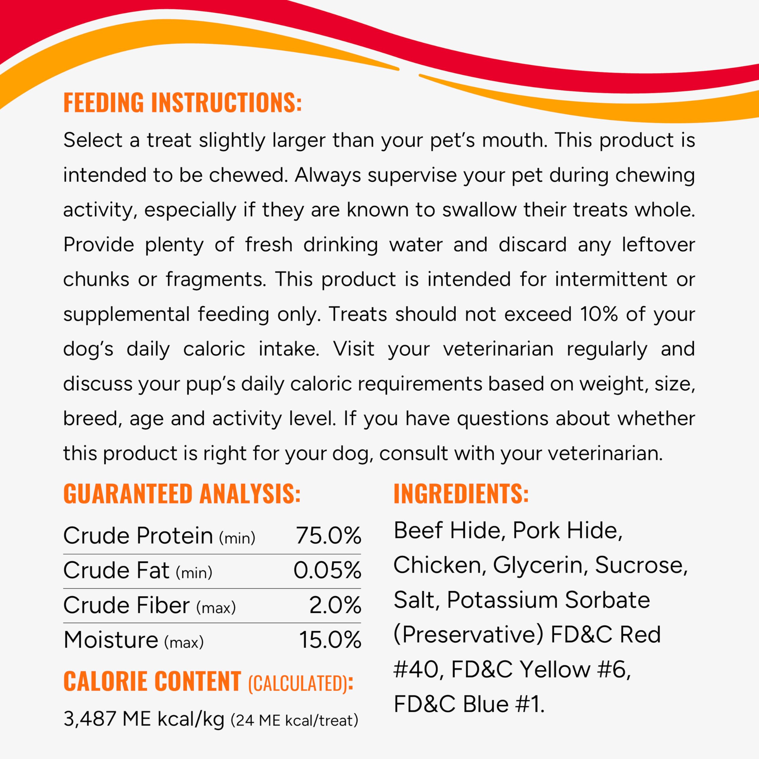Premium Rawhide Twisted with artificial pork Flavor and wrapped in savory chicken