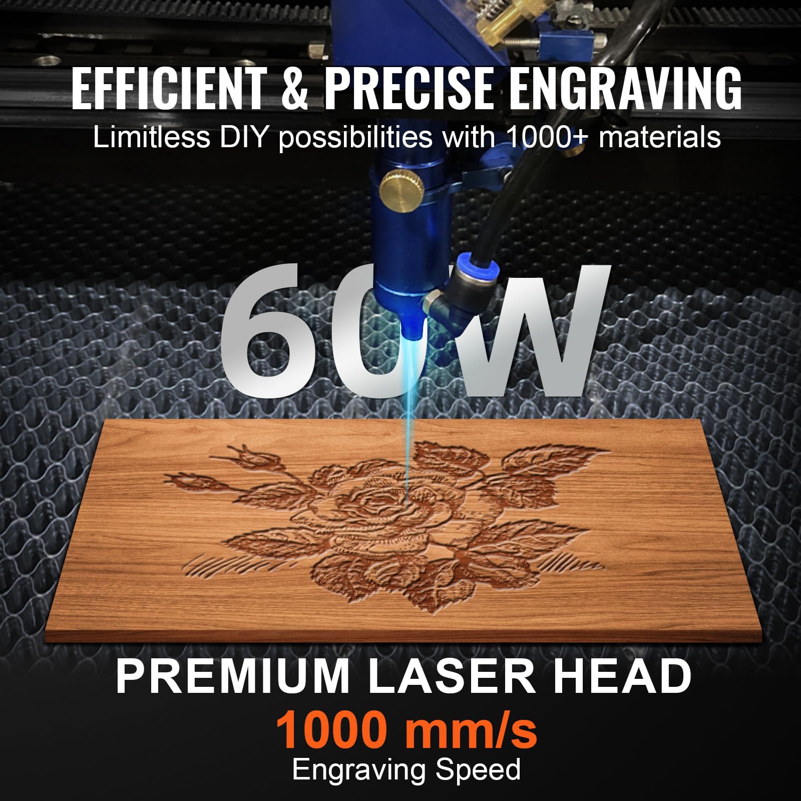 【Professional CO2 Laser Engraver】Our 60W CO2 laser engraver is a versatile and precise tool that can engrave various materials including wood, bamboo, plexiglass, crystal, leather, rubber, marble, ceramics, and glass. With speeds up to 500 mm/s, It is widely used in industries such as advertising, gifts, shoes, and toys due to its high accuracy, broad application range, fast output speed, and cost-effectiveness. Laser Class: Class 4 (IEC 60825-1:2014), power output: 5mW.