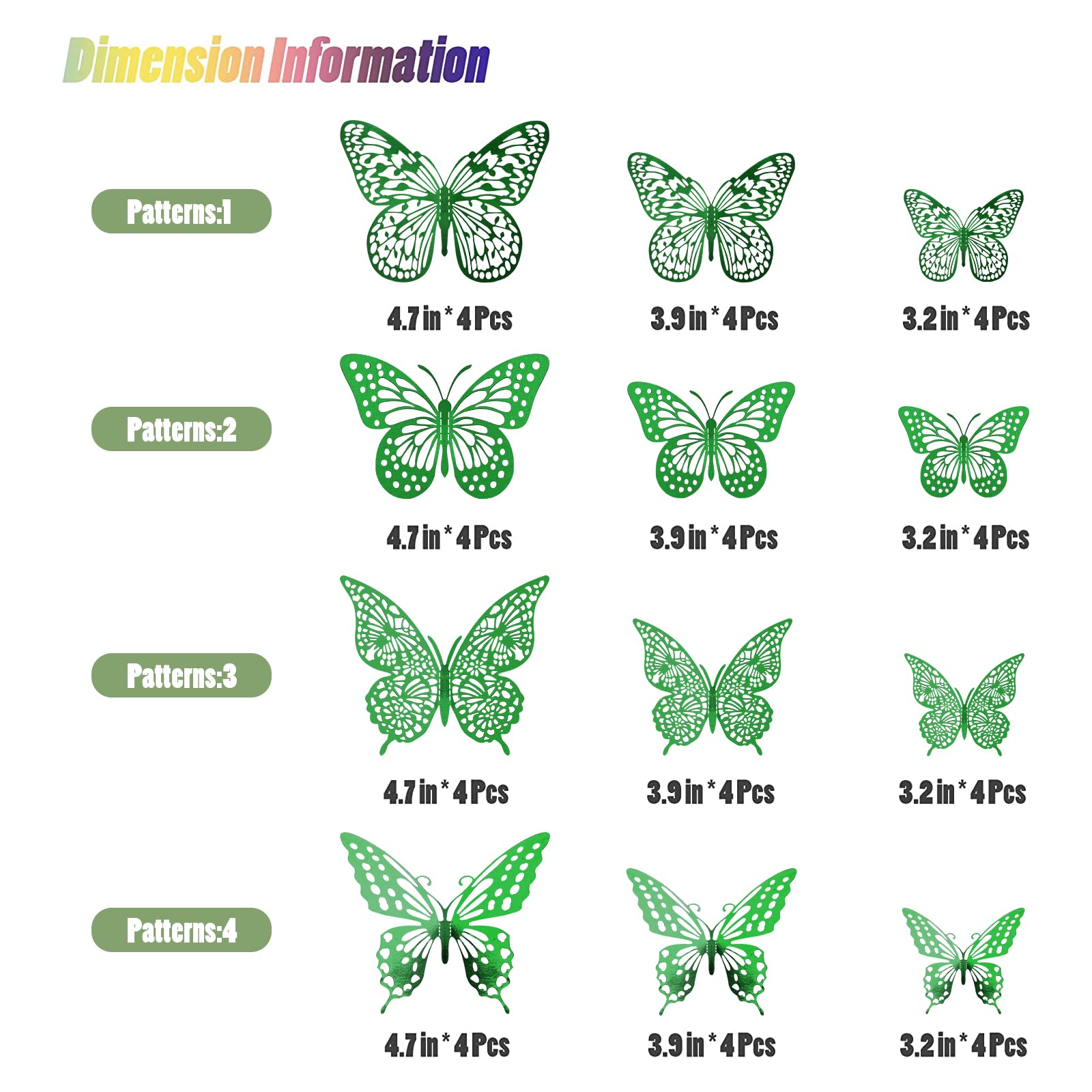 【Package Included】48 pcs butterflies: 12 pcs Style 1, 12 pcs Style 2, 12 pcs Style 3, 12 pcs Style 4, each style has 3 sizes(3", 4", 5"). Coming with 48 pcs double sided adhesive dots.