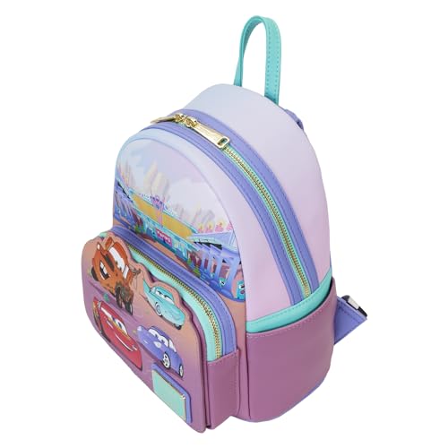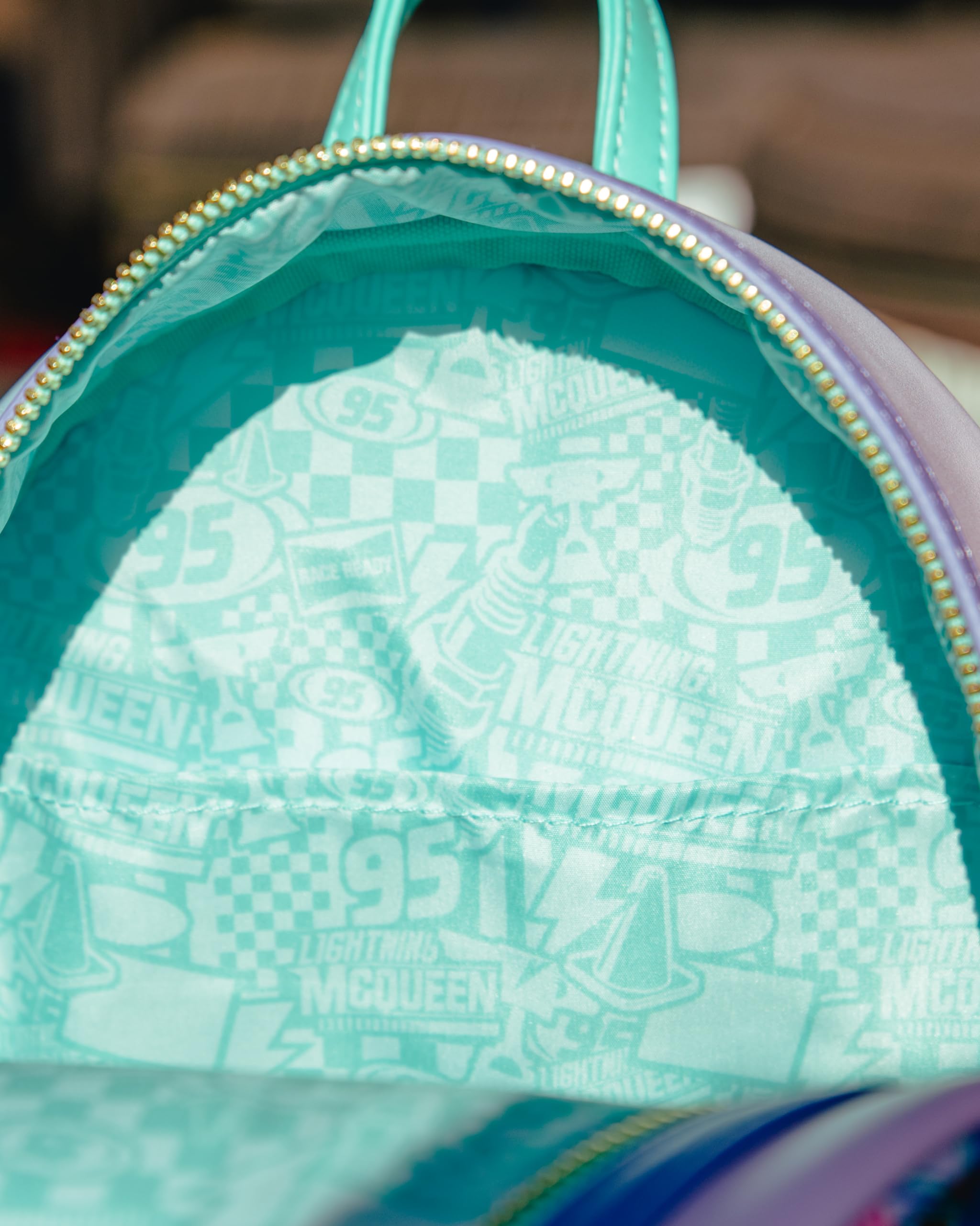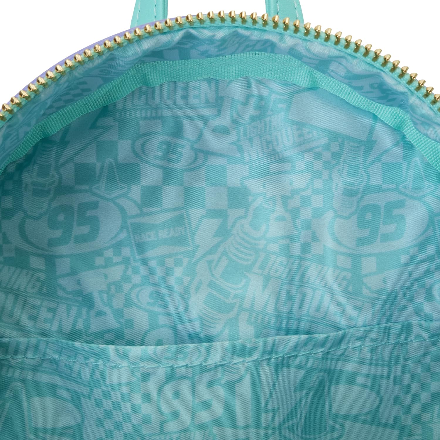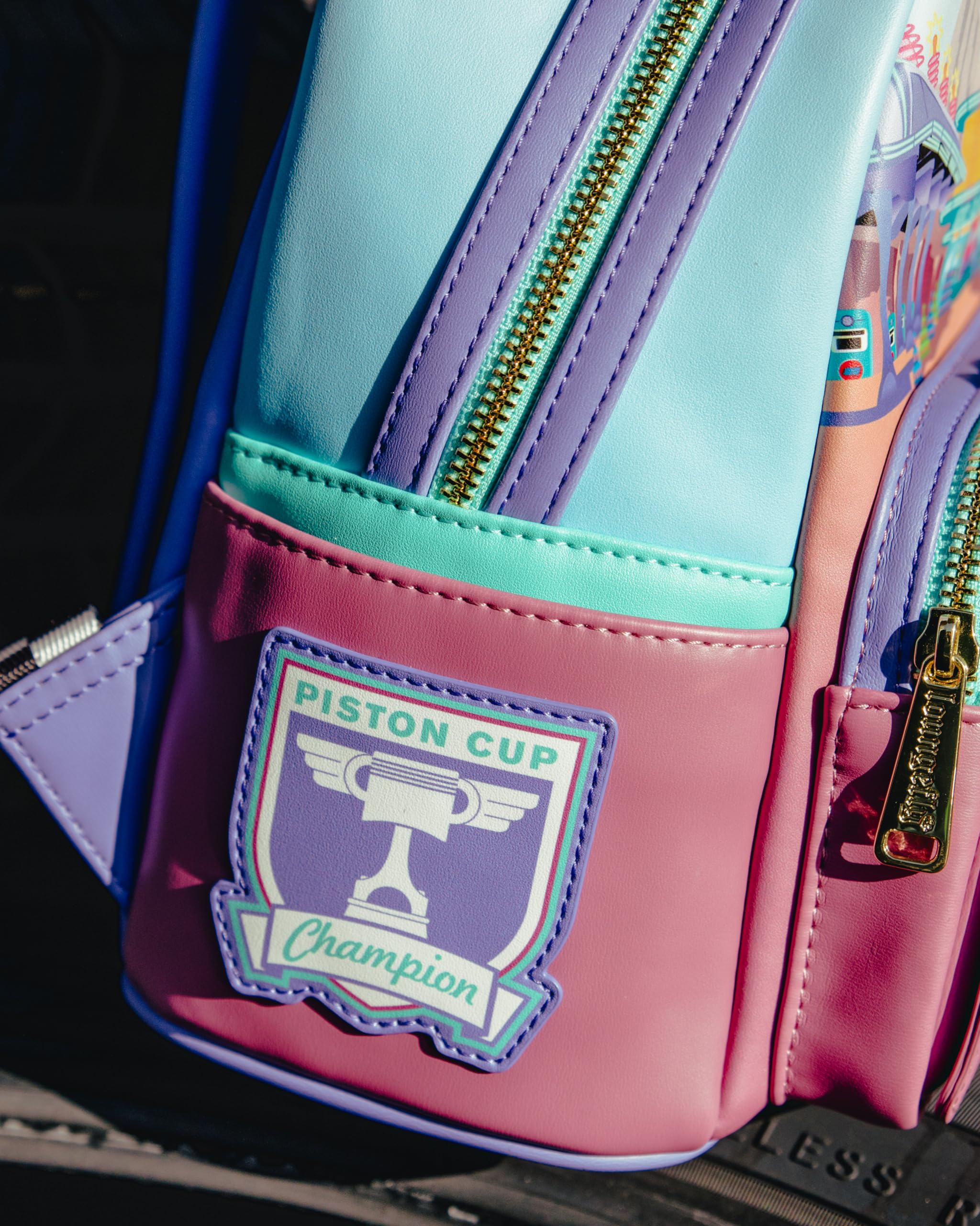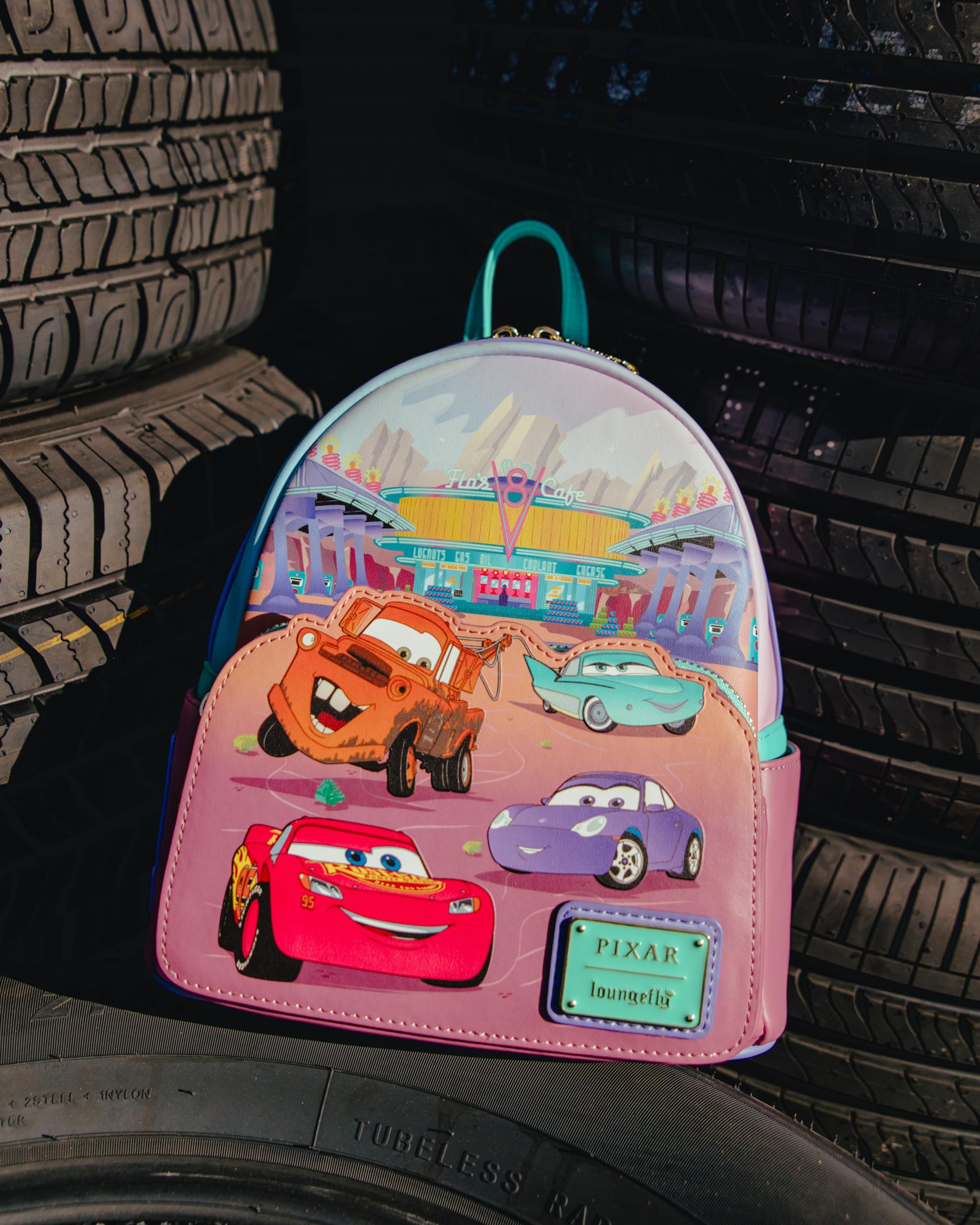 Featuring incredible detail to bring Cars to life, this Loungefly mini-backpack is made of vegan leather (polyurethane), has a front zipper compartment, side pockets, and adjustable back straps.